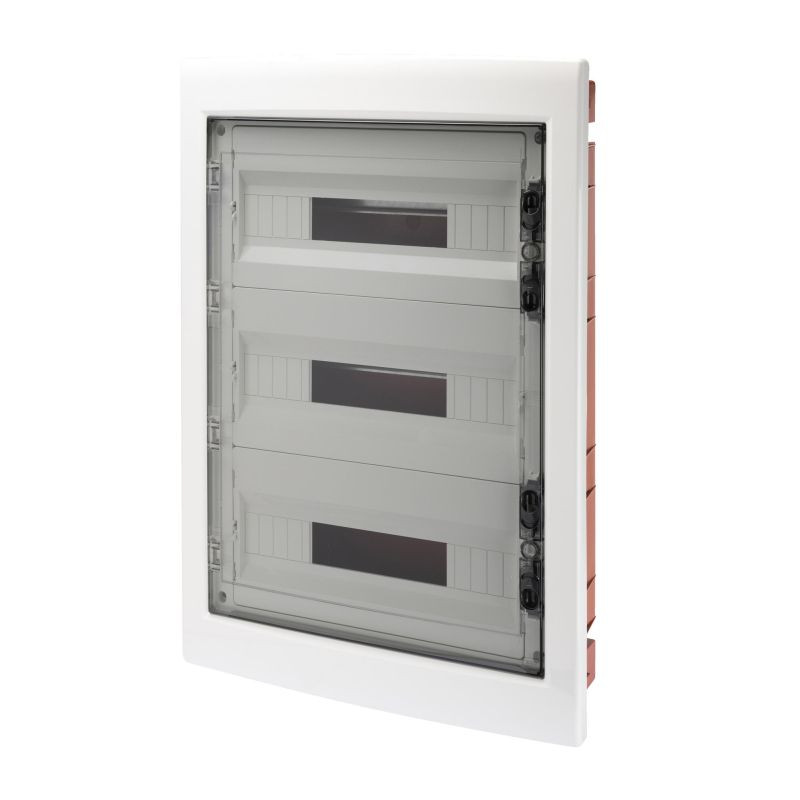 Kiselosztó süllyesztett 3soros, 54 modulos átlátszó ajtóval IP40 PE/N dupla sínnel GW40610BD