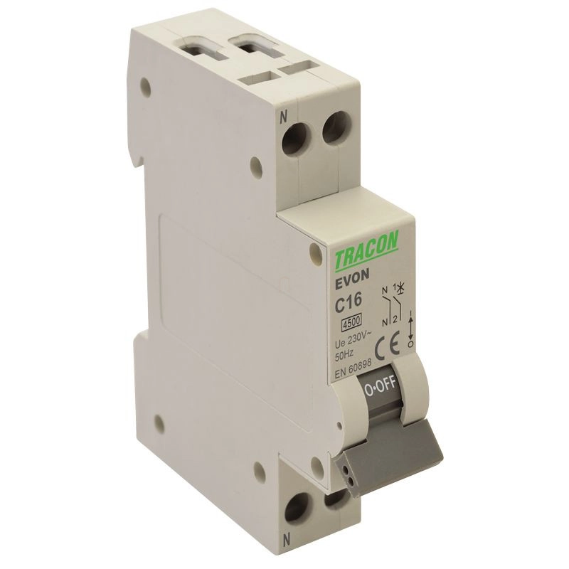 Kismegszakító, 1+N pólus, C karakterisztika 4,5kA 20A EVONC20 Tracon