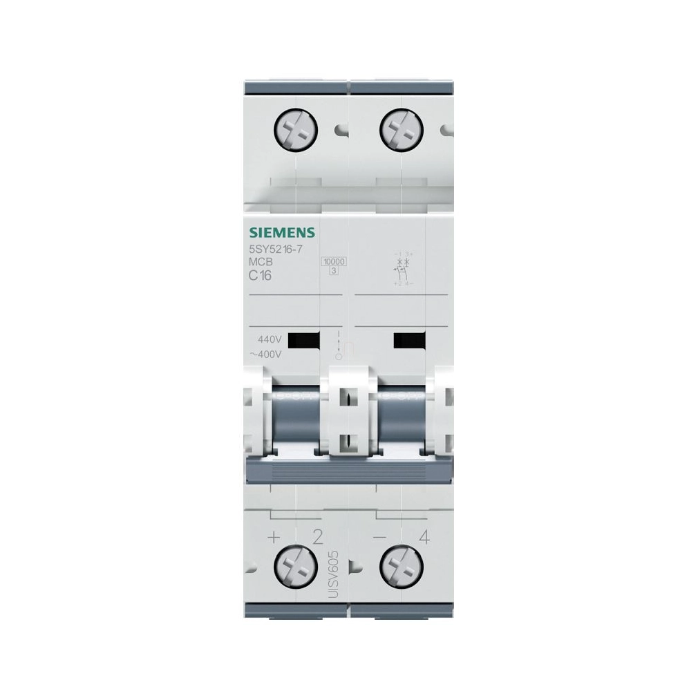 Megszakító Univerzális áramerősség 440 V DC 400 V AC 10kA, 2 pólusú, C, 16A Miniatűr megszakító SENTRON 5SY\n