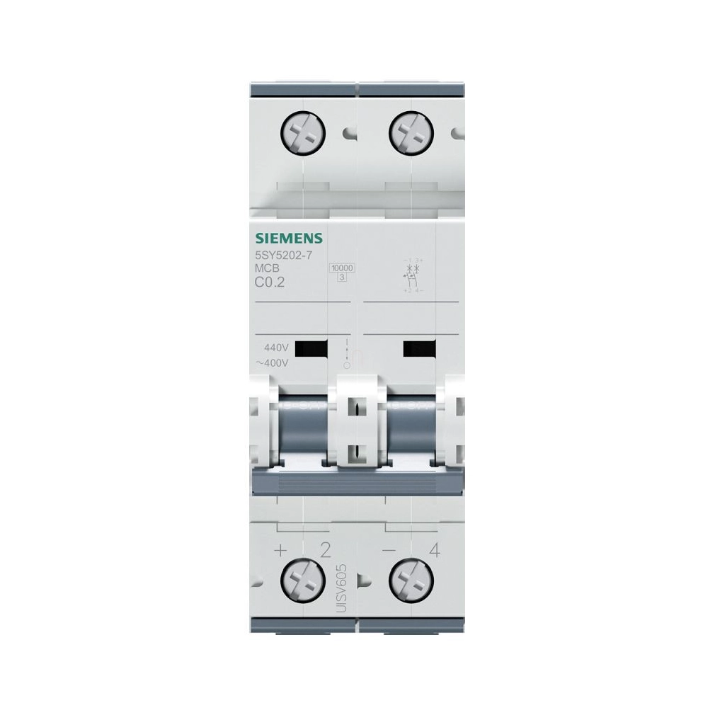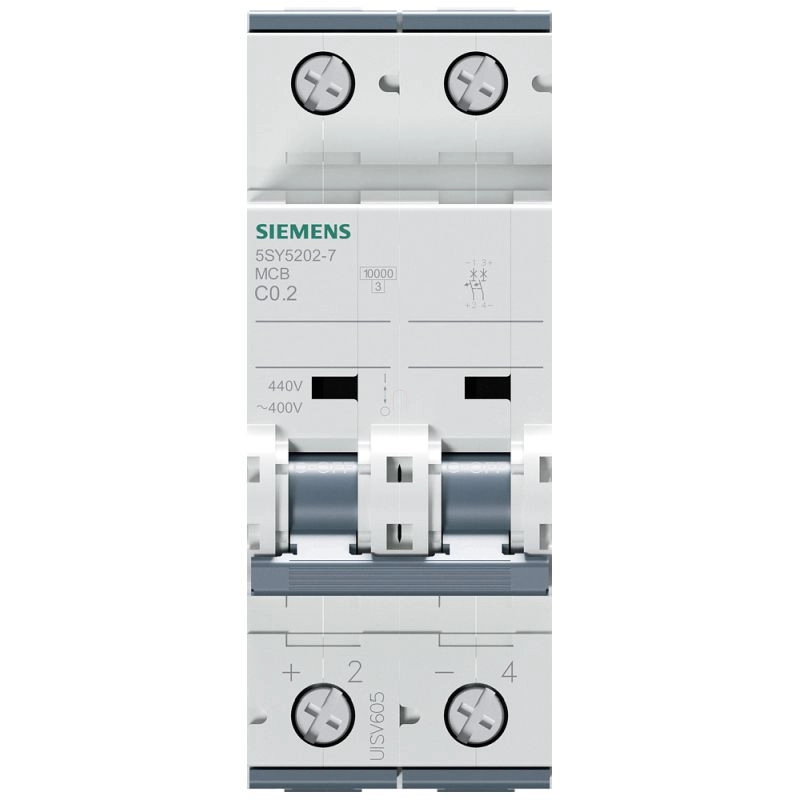 Megszakító Univerzális áram 440 V DC 400 V AC 10kA, 2 pólusú, C, 02A Miniatűr megszakító SENTRON 5SY\n