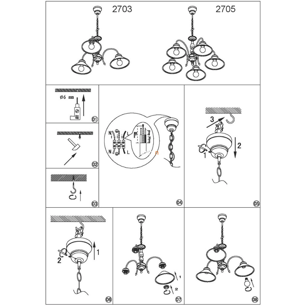A Marian Rábalux 2705 klasszikus csillár bronz színben, öt E27 foglalattal rendelkezik, amelyek cserélhető fényforrások használatát teszik lehetővé. A lámpatest fém és üveg anyagból készült, fehér és bronz színkombinációval. A csillár átmérője 700 mm, magassága 1100 mm, tömege 6,3 kg. A termék IP20 védettséggel rendelkezik, így beltéri használatra alkalmas. A fényforrást a csomag nem tartalmazza, a teljesítmény, fényáram, színhőmérséklet és fényszín a választott izzótól függ. A termék nem szabályozható, és a csomagolás méretei: 59 cm szélesség, 57 cm hosszúság, 40 cm magasság. A gyártó Rábalux.