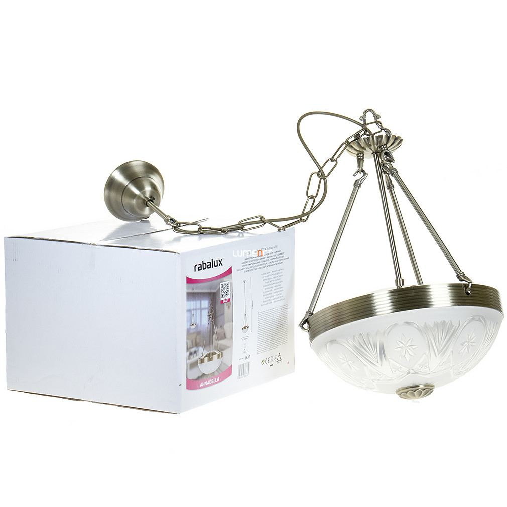 A Klasszikus csillár díszes opál üveggel bronz színben, az Annabella Rábalux 8637 modell, elegáns megjelenésével és klasszikus stílusával emeli bármely lakótér hangulatát. A csillár 2 darab E27-es foglalattal rendelkezik, amelyekbe cserélhető fényforrás helyezhető, így a fényáram, a színhőmérséklet és a teljesítmény igény szerint alakítható. A lámpatest nem szabályozható, IP20-as védettségi besorolással rendelkezik, így beltéri használatra ajánlott. A bronz színű, fém szerkezet és az opál üveg harmonikus összhangban teremt időtálló, klasszikus megjelenést. Az átmérője 320 mm, teljes magassága 1100 mm, a termék tömege 3,86 kg. A csillár fényforrást nem tartalmaz, a csomagolás méretei: 33x33x24 cm. Az Annabella Rábalux 8637 a Rábalux gyártásában készült, megbízható minőséget képviselve a lakásvilágítás területén.