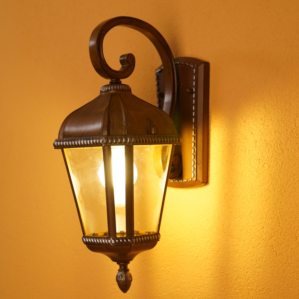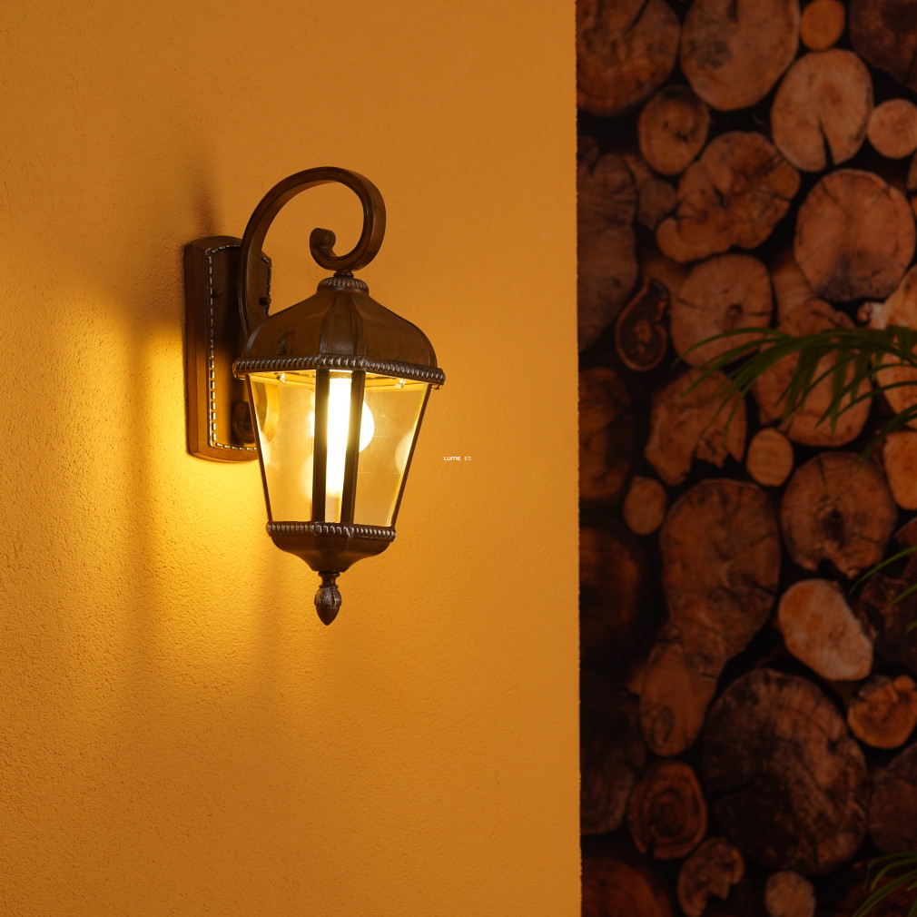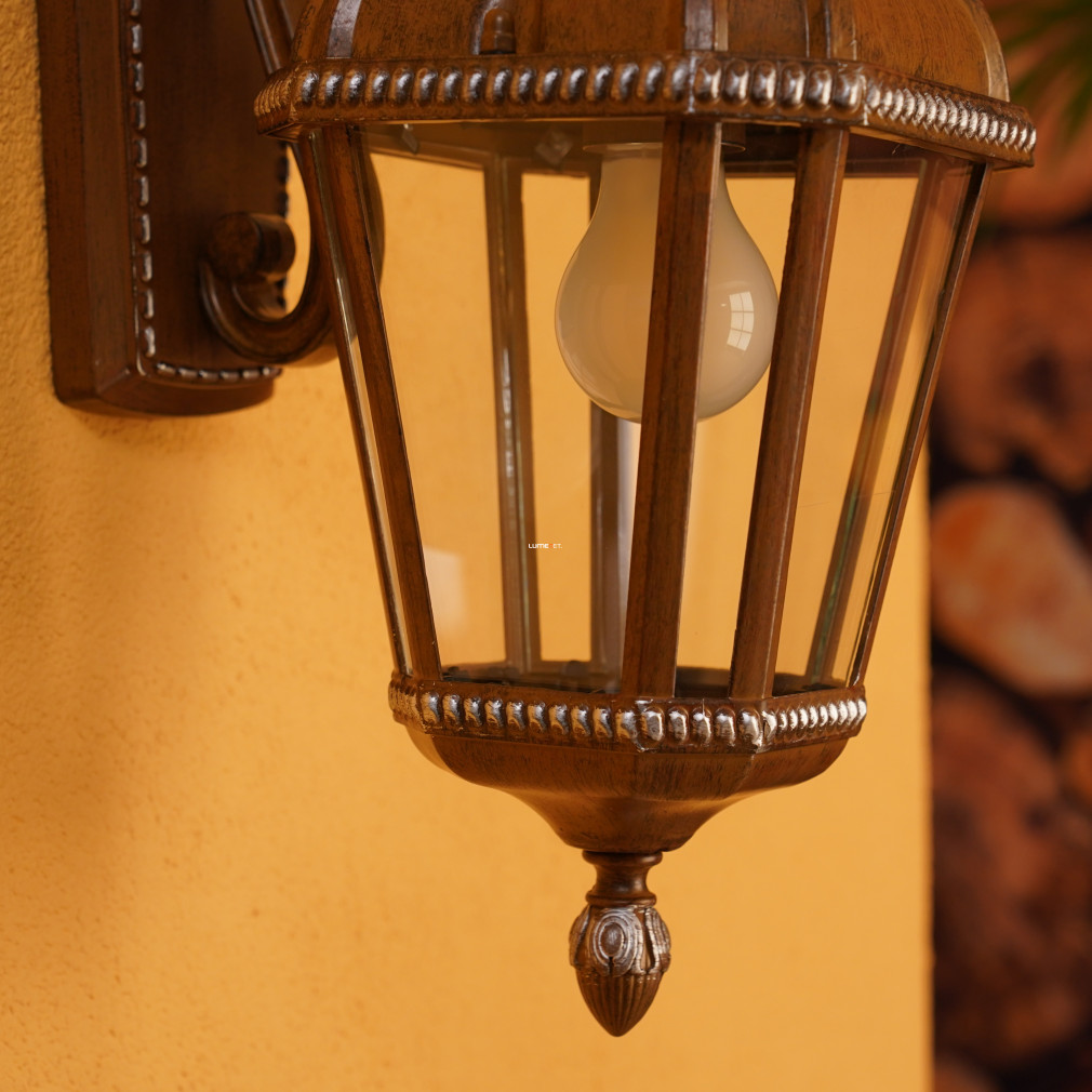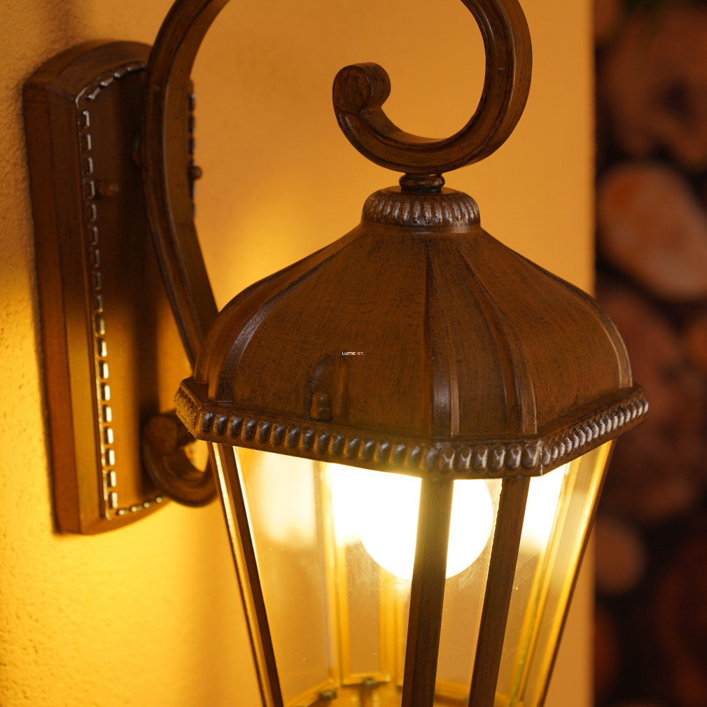 Klasszikus kültéri fali lámpa fényforrással, felső rögzítésű, antik barna - Essen Redo 9667