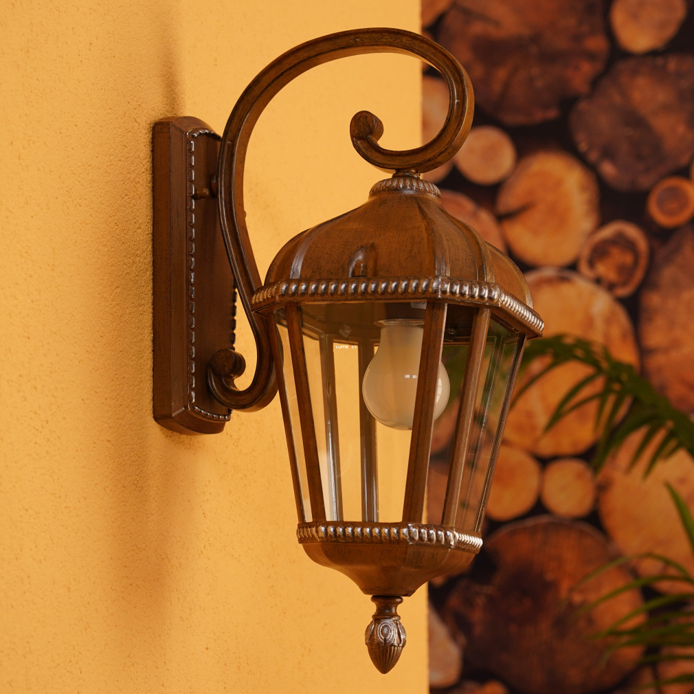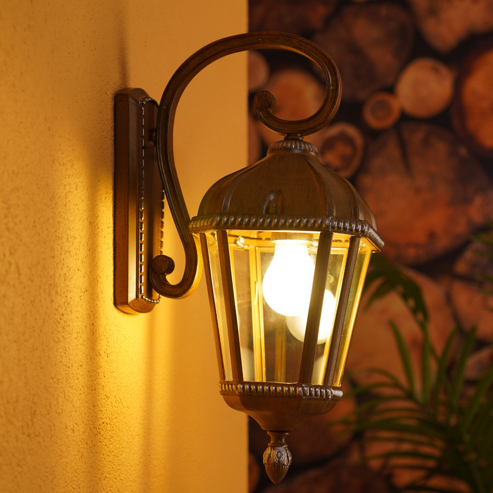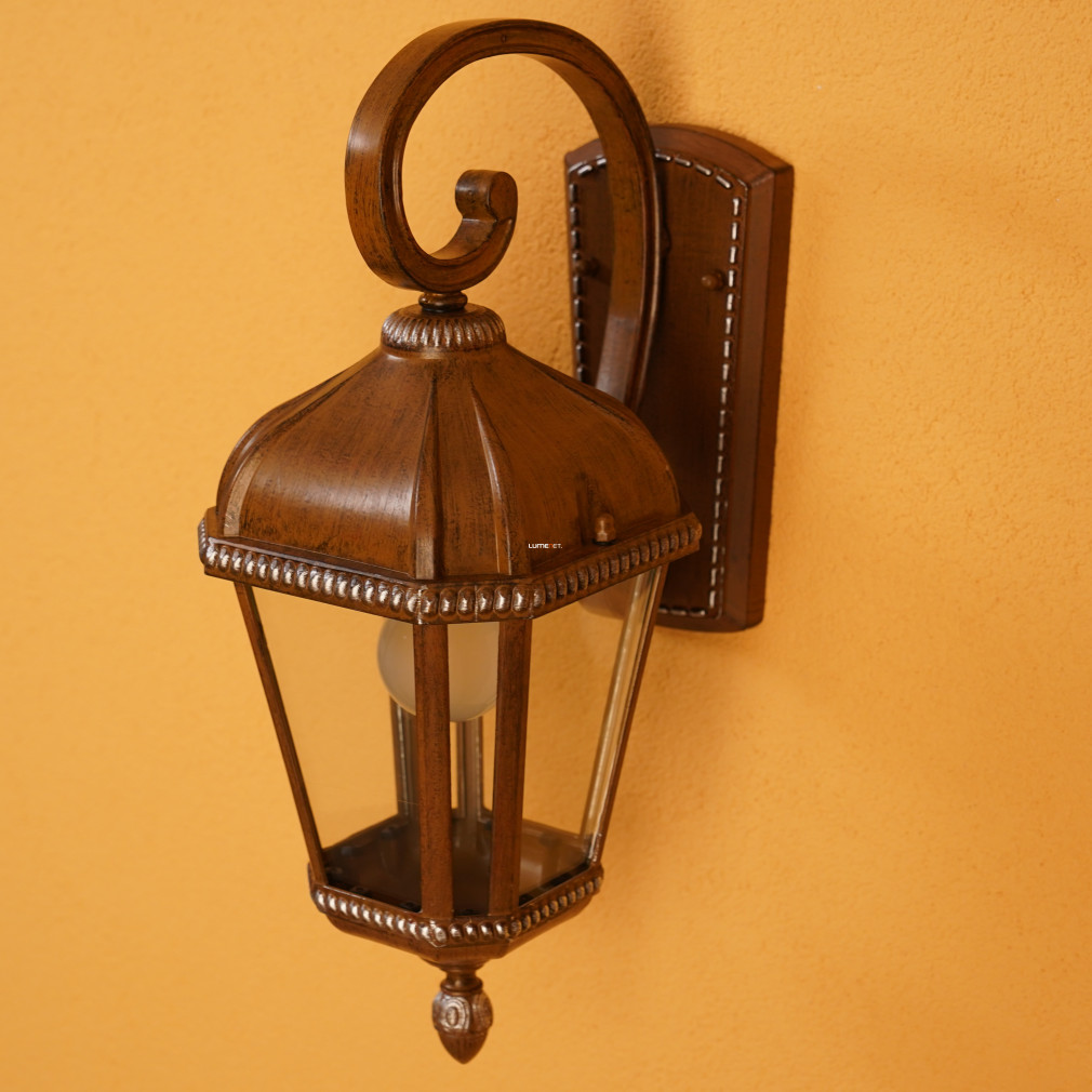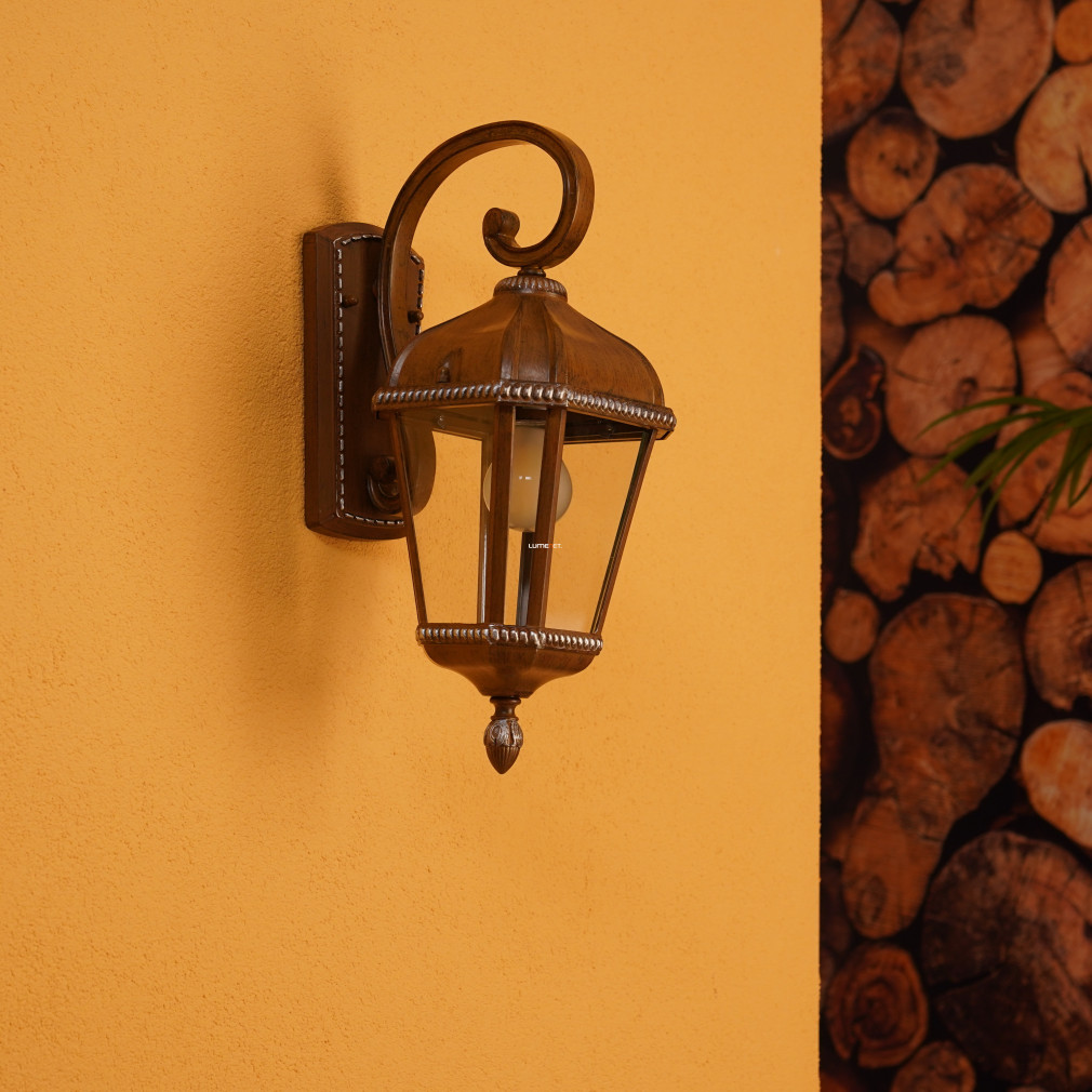 Klasszikus kültéri fali lámpa fényforrással, felső rögzítésű, antik barna - Essen Redo 9667