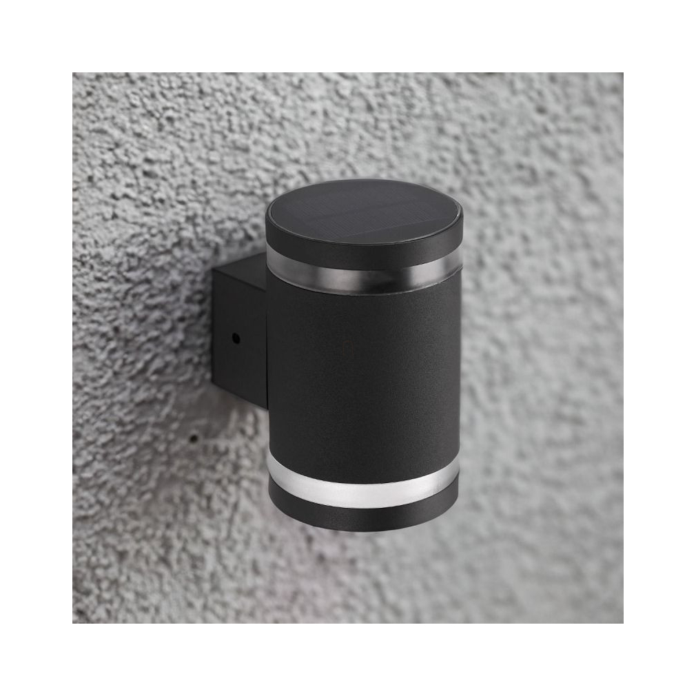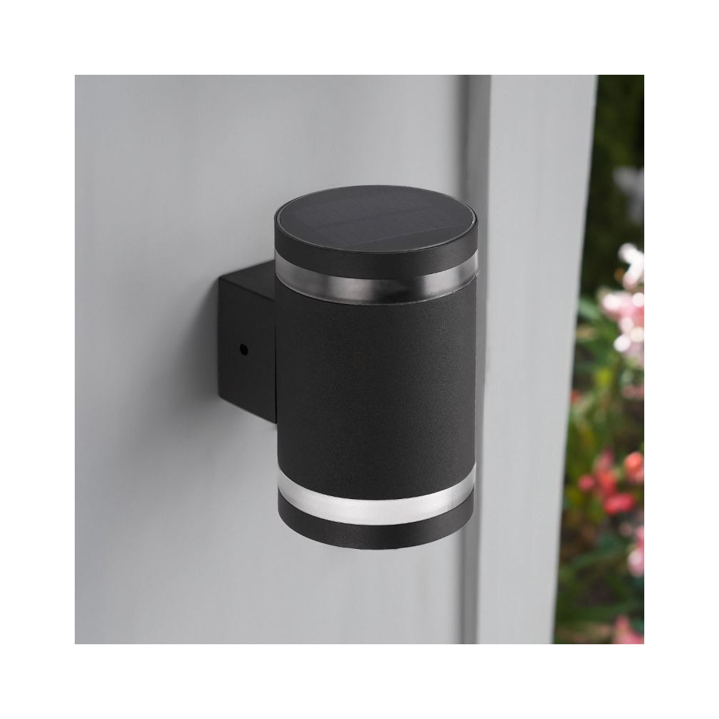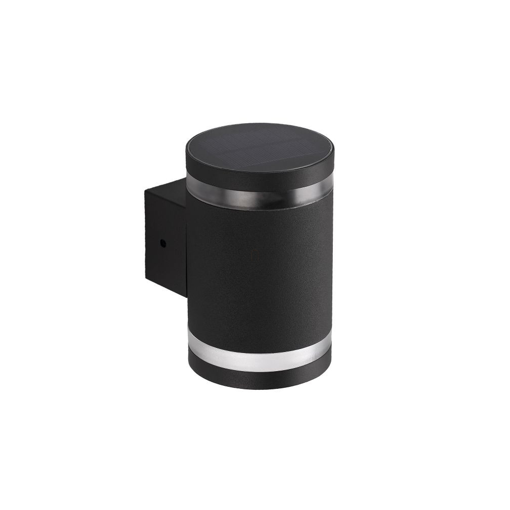 Napelemes fali lámpa, 1,6W, 15lm, 6500K, fekete IP44 - Klausen Sunrise