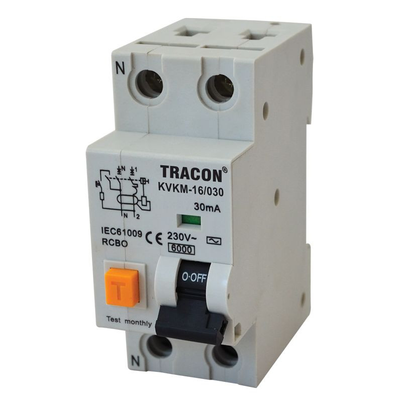 Kombinált védőkapcsoló 2B10A, 2P/0,03A 6kA KVKMB-10/030 Tracon