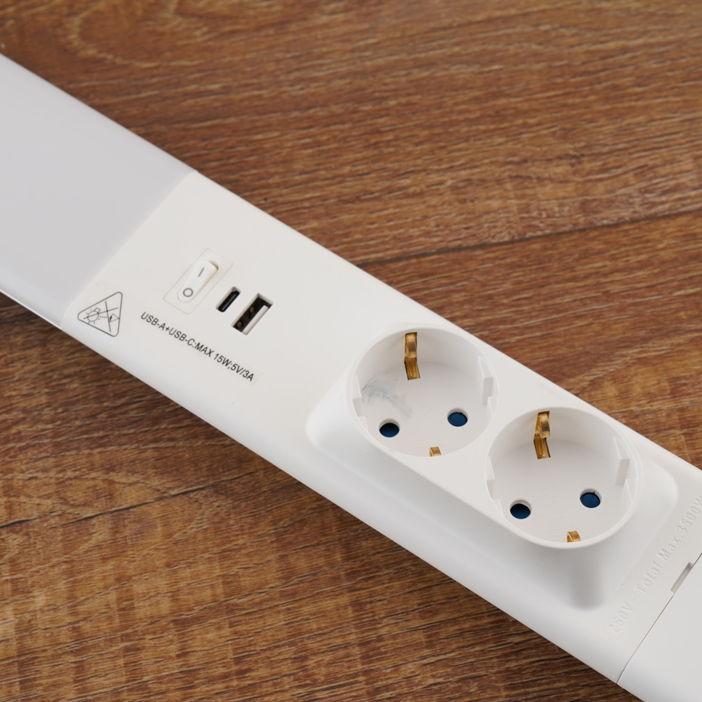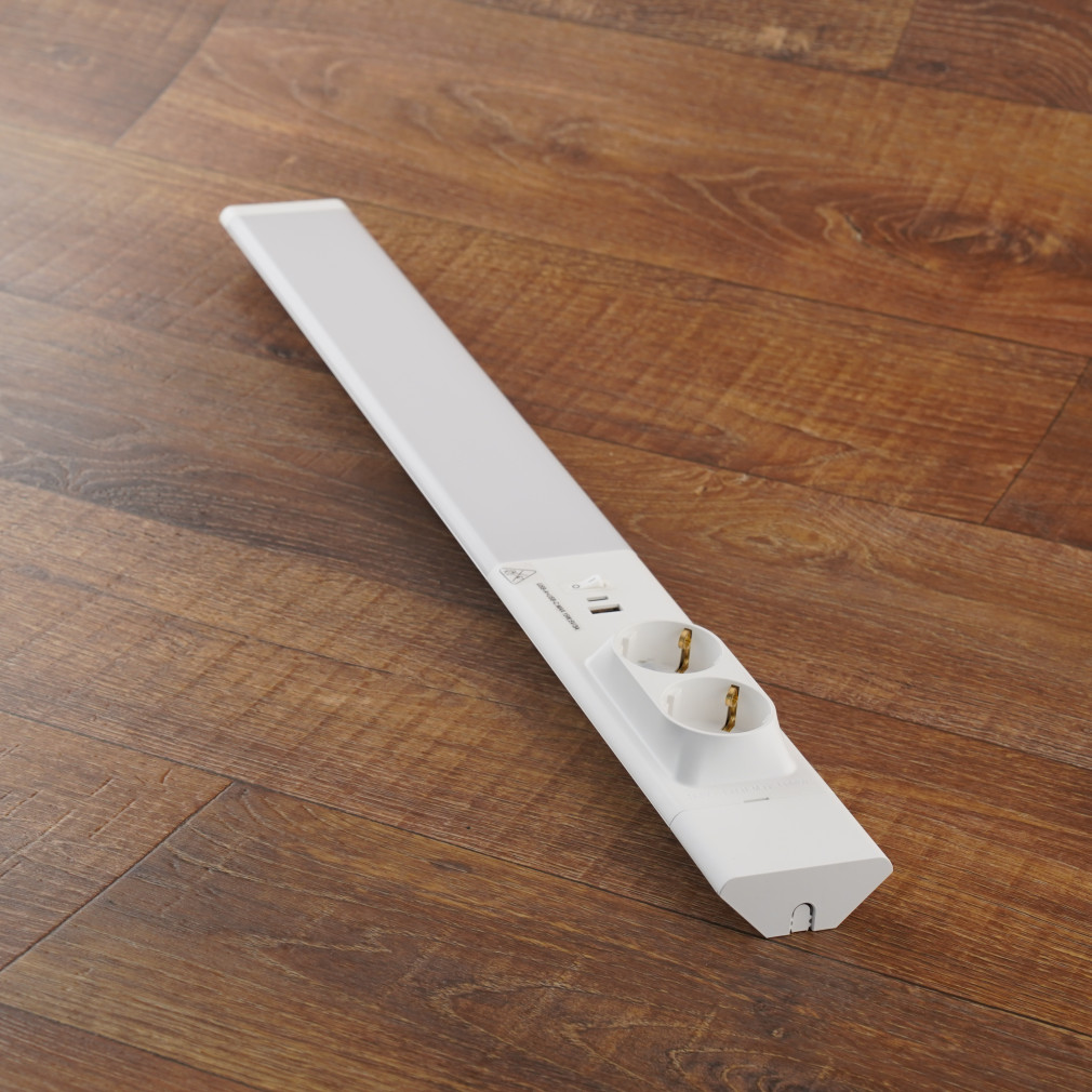 A Bilal Rábalux 78032 konyhai pultvilágító LED lámpa integrált 18 W teljesítményű LED modullal és 1750 lumen fényárammal rendelkezik, amely 4000 K színhőmérsékletű hidegfehér fényt biztosít. A lámpatest alumínium és műanyag kombinációjából készült, fehér színben, IP20-as védettséggel. A termék átlagos élettartama 25 000 óra. A 600 mm hosszúságú, 60 mm átmérőjű és 270 mm széles lámpa két beépített dugaljjal, valamint USB funkcióval is felszerelt, így egyszerre biztosítja a munkafelület megvilágítását és az elektromos eszközök csatlakoztatását. A LED fényforrás beépített, cserét nem igényel. A gyártó Rábalux.