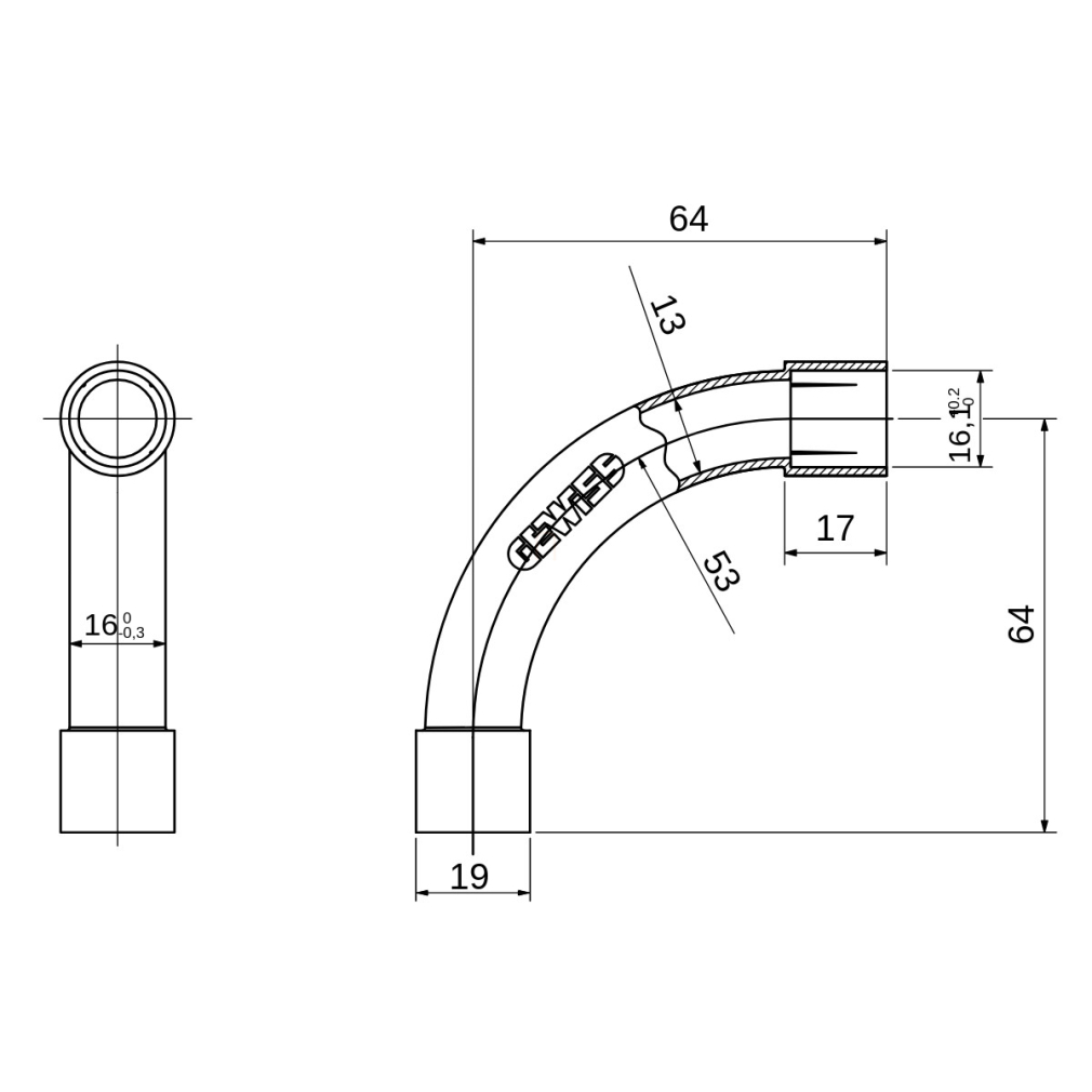 Könyök Mü.II. 16 IP40 szürke halogénmentes DX40116 Gewiss