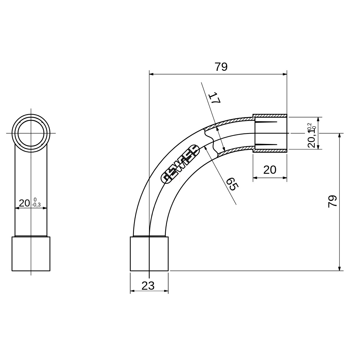 Könyök Mü.II. 20 IP40 szürke halogénmentes DX40120 Gewiss