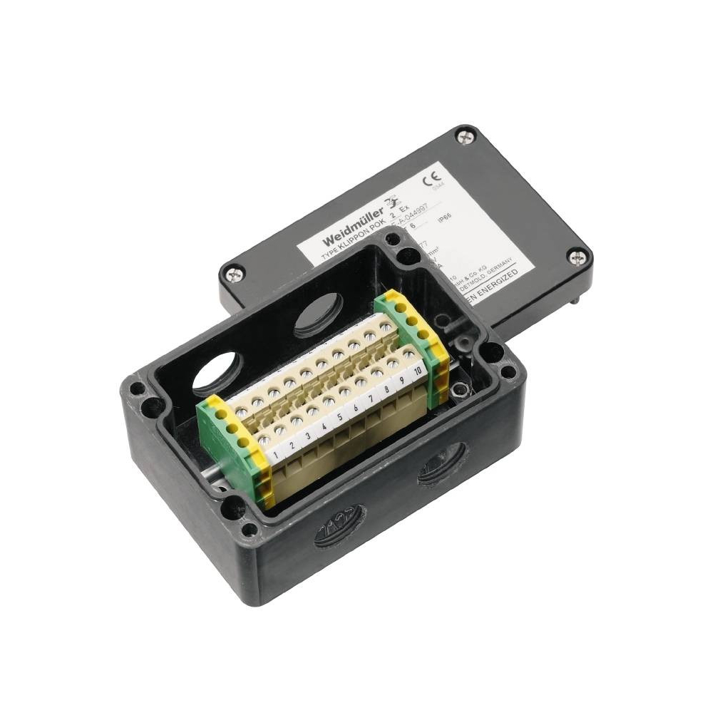 Sorkapocs doboz, ATEX ll 2GD T85°C Ex e ll T6, KLIPPON POK 081106 EX, KL SET 10A4 S, Furatok, A oldal: 2 x M20x1.5, Furatok, B oldal: 2 x M20x1.5