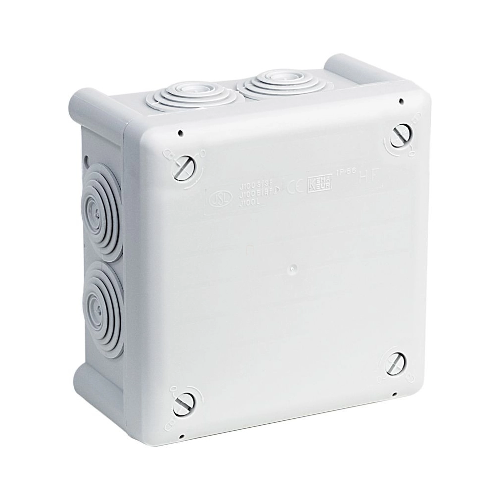 Kötődoboz vakolat fölé J100B halogénmentes világosszürke 100x100x55mm, 7xM25, IP65 105641 Univolt