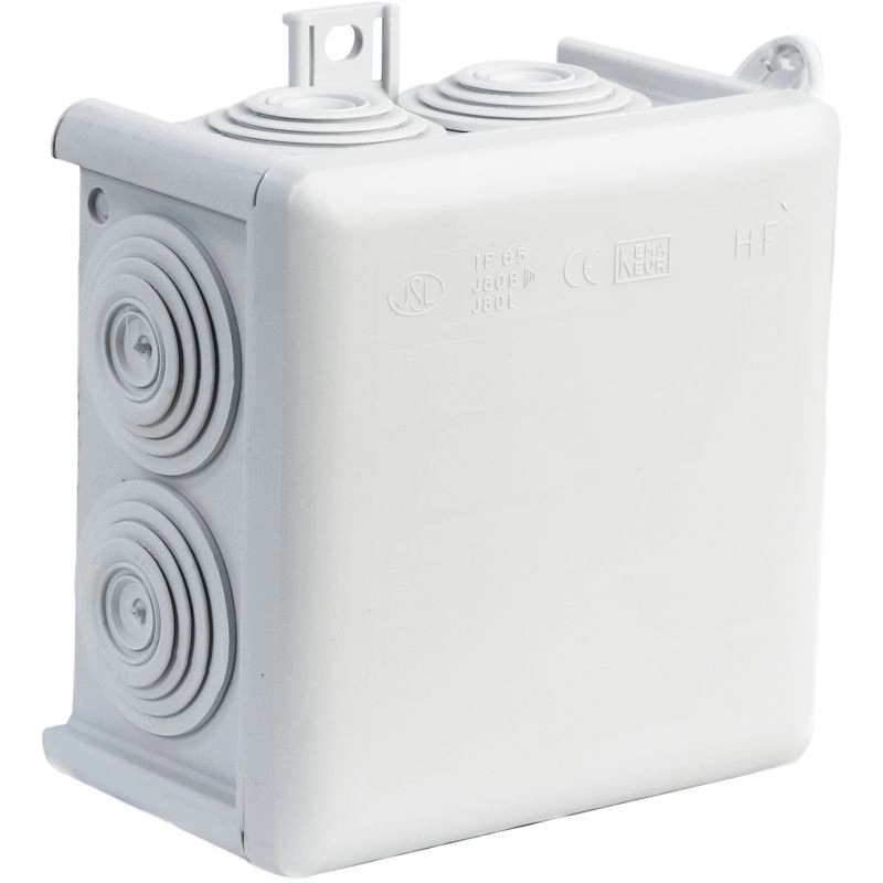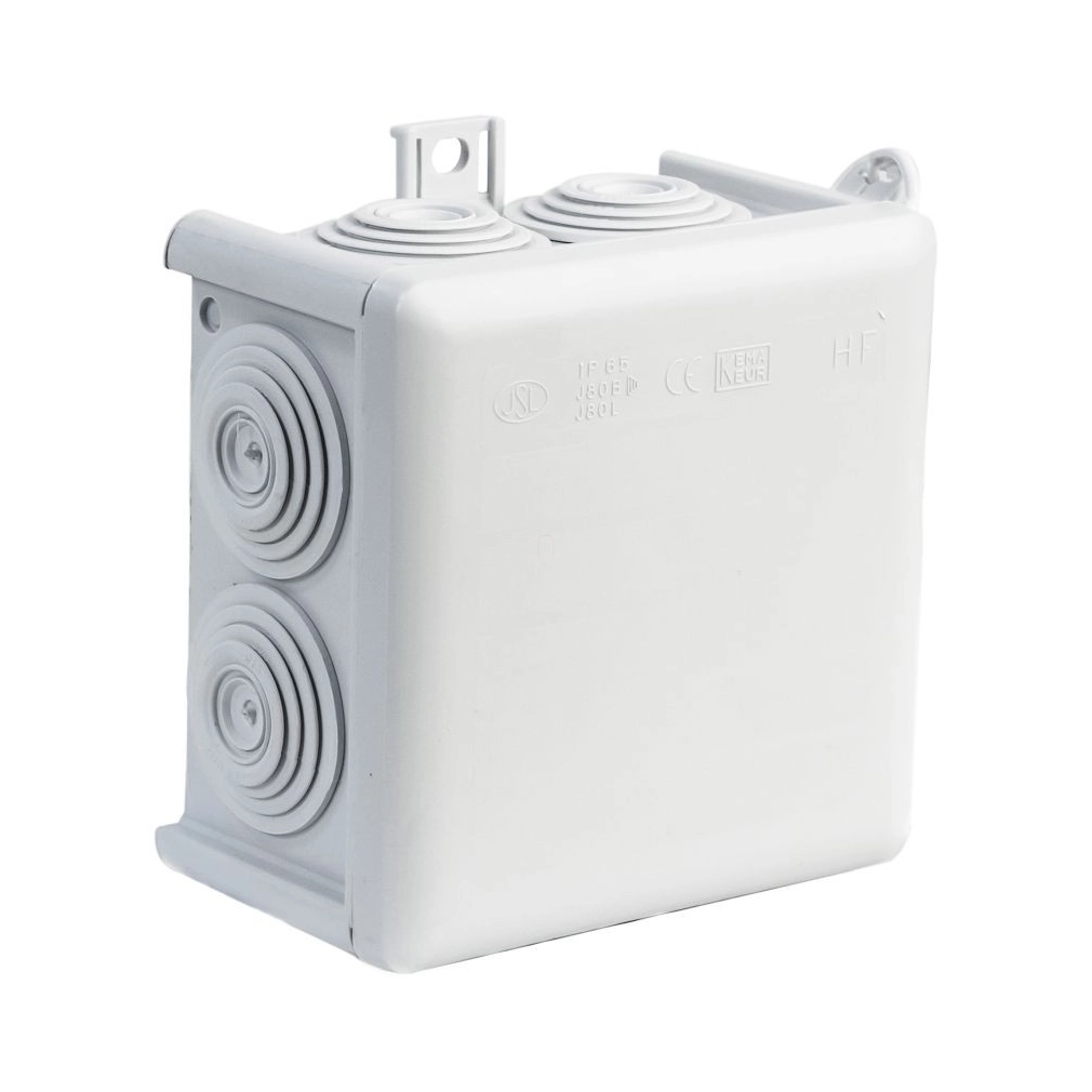 \nKötődoboz vakolat fölé, 85x85x55mm, 7 kábelbevezetés, halogénmentes, IP65