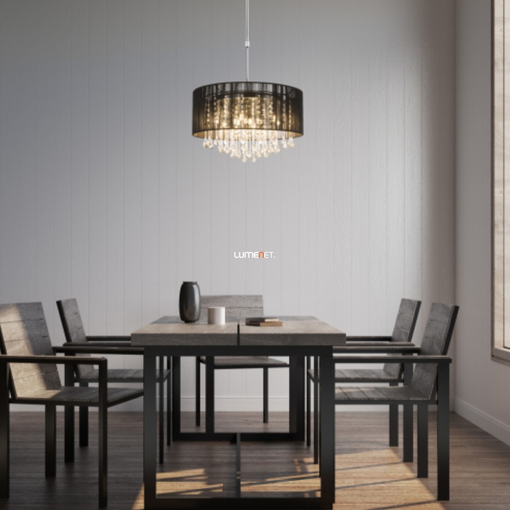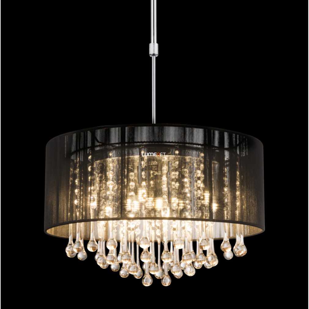 Kristály csillár fekete textil burával fényforrással, 50 cm - Bagana Globo 15095H