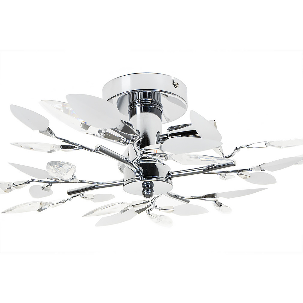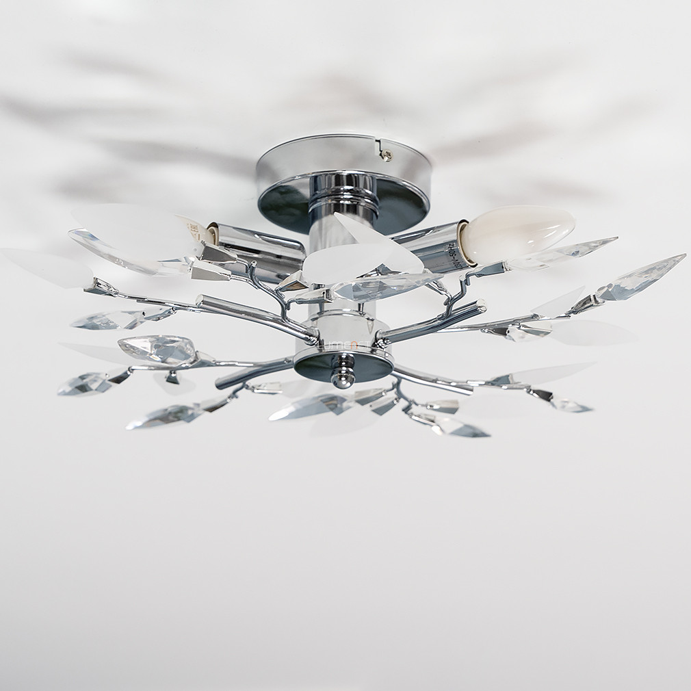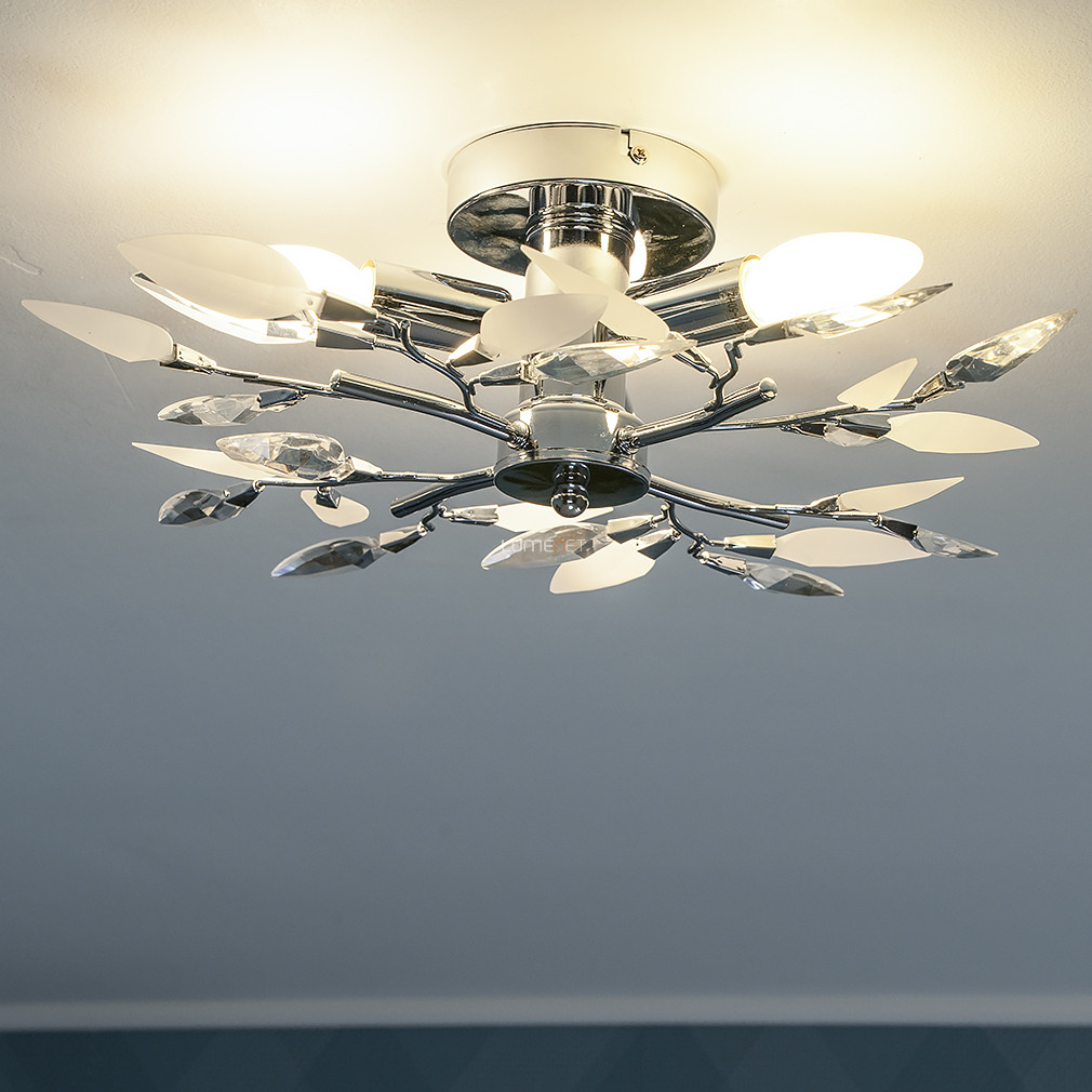 Ez a kristály leveles mennyezeti lámpa elegáns krómozott karokkal varázsolja el otthonodat, modern stílusával és cserélhető fényforrásával.