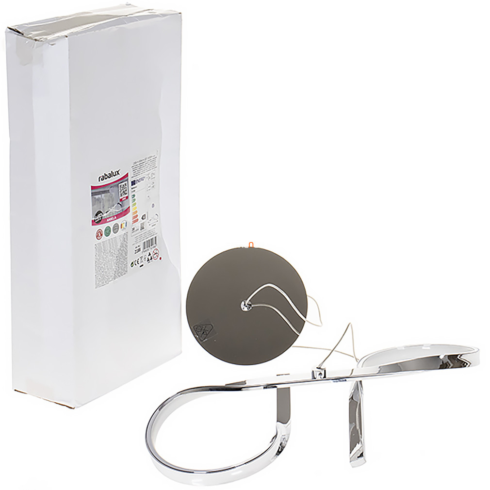 A Króm szalag hatású függesztett LED lámpa, Aniela Rábalux 2188 modell, modern minimál stílusban készült, amelyet króm színű fémháza és letisztult formavilága jellemez. A lámpatest beépített, 20 W teljesítményű LED modullal működik, amely 1600 lumen fényáramot biztosít, 4000 K színhőmérsékletű, hidegfehér fényt bocsát ki. A termék átlagos élettartama 20 000 óra, így hosszú távon is megbízható világítási megoldást kínál. A lámpatest hossza 450 mm, magassága 1300 mm, IP20 védettséggel rendelkezik, beltéri használatra alkalmas. A csomagolás méretei: 10 cm széles, 22 cm hosszú és 46 cm magas. A Rábalux által gyártott Aniela 2188 függesztett lámpa nem szabályozható, a fényforrást a beépített LED modul tartalmazza.