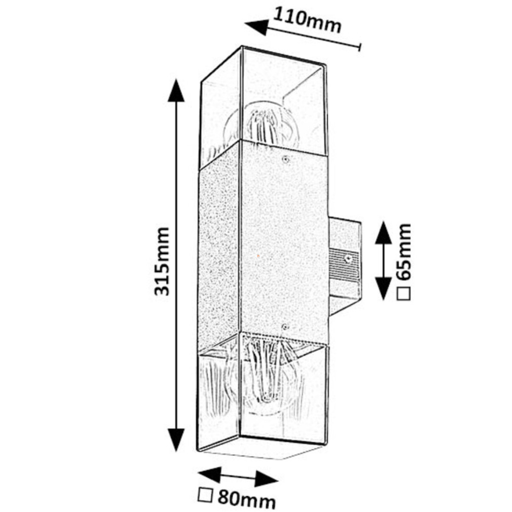 Kültéri fali lámpa füstszínű kocka búrával, 2 foglalattal - Loanda Rábalux 77081