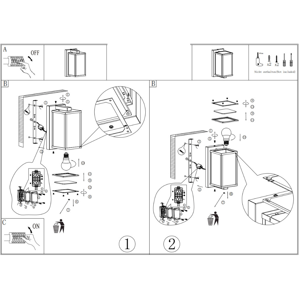 Kültéri fali lámpa, üvegfalas - Budrone Eglo 900289