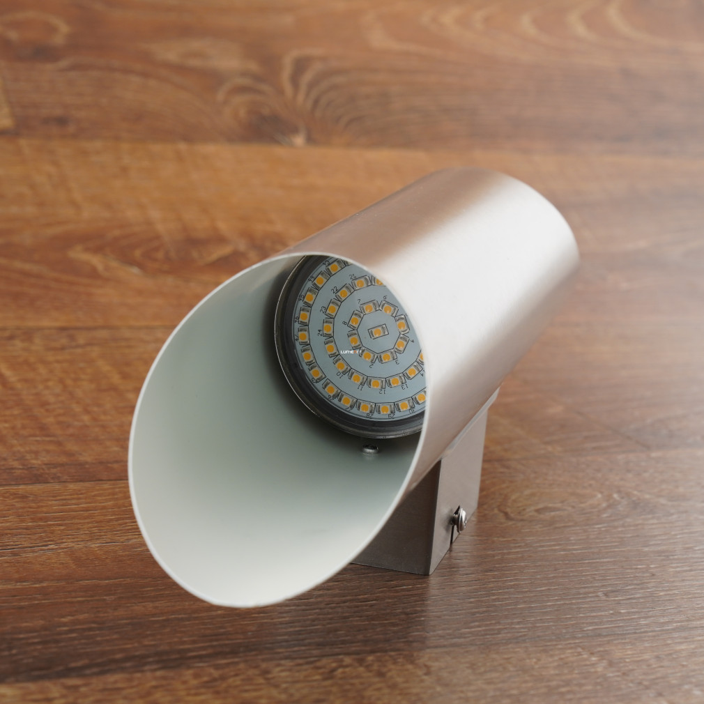 Az Eglo 94803 Agolada kültéri fali LED 2 darab 3,7 Watt teljesítményű LED modullal van szerelve, ami együttes fényárama 640 lumen. Az említett fényáram nagyságrendileg egy 50 wattos hagyományos izzónak felel meg. A beépített LED modulok nem cserélhetők, de nem is lesz rá szükség, hiszen a beépített LED chipek rendkívül hosszú élettartamúak, melyre bizonyíték a 2 év gyártói garancia. A 3000K beépített LED chipek semleges meleg fehér színt adnak. Az ezüst acél test időtálló és modern, formában jól illeszkedik a legtöbb homlokzathoz. A fel és le, világító lámpatest homlokzatra szerelve kiváló modern világítást eredményez a ház sarkain, vagy akár bármelyik oldalfalon. IP44-es mérsékelt víz elleni védettséggel eresz alá szerelhető kültéren.
