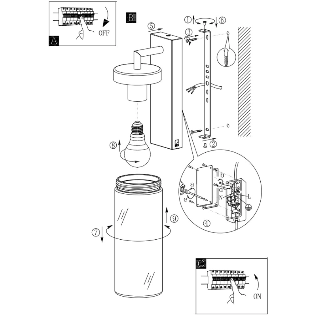 Kültéri fali üveg lámpa - Bovolone Eglo 97261