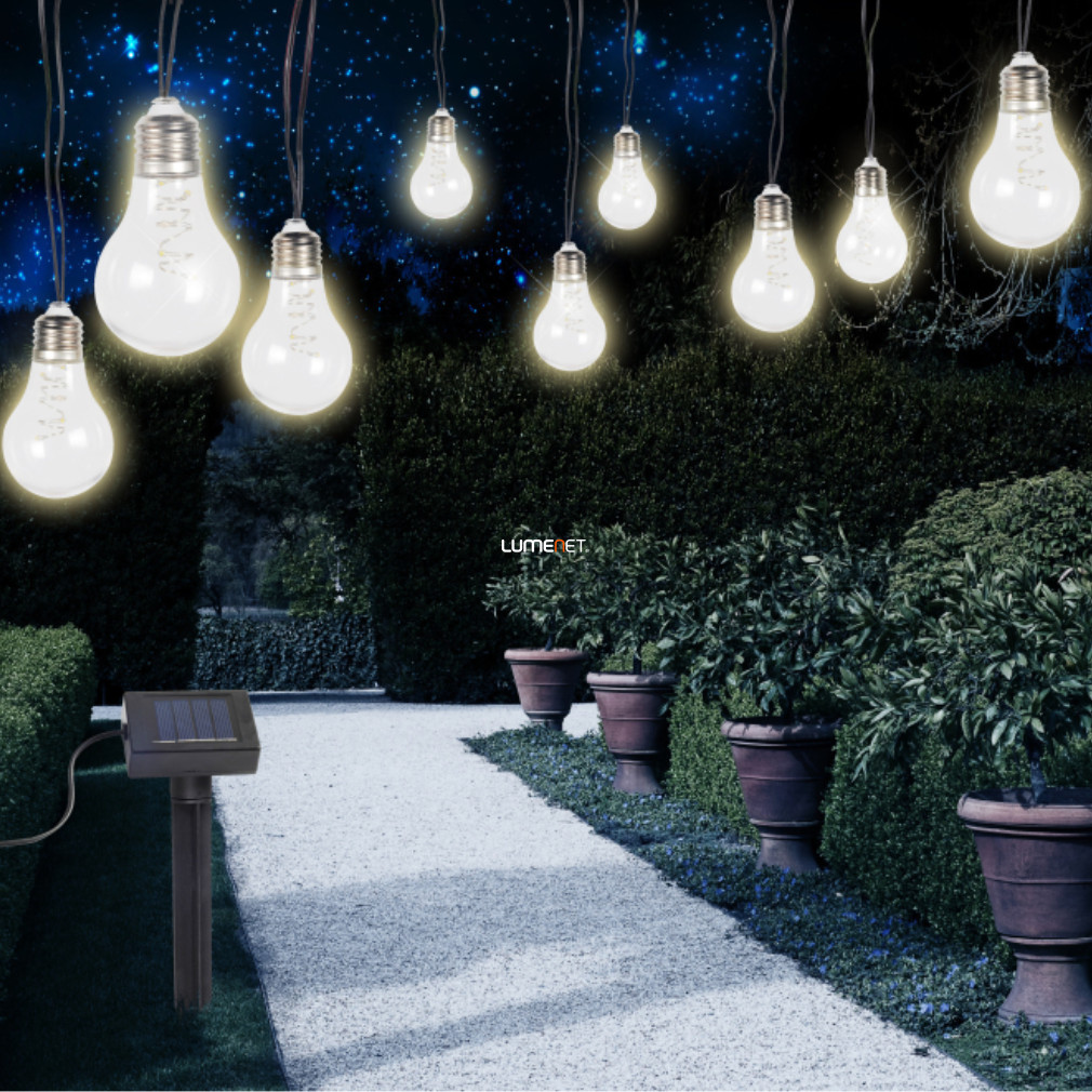 Kültéri földbe szúrható LED napelemes gömb fényfüzér, 3, 8 cm, ezüst-áttetsző - Solar Globo 33708-10
