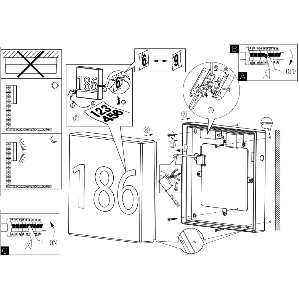 Kültéri házszám világító fali LED lámpa betű és szám matricákkal - Cornale Eglo 97289