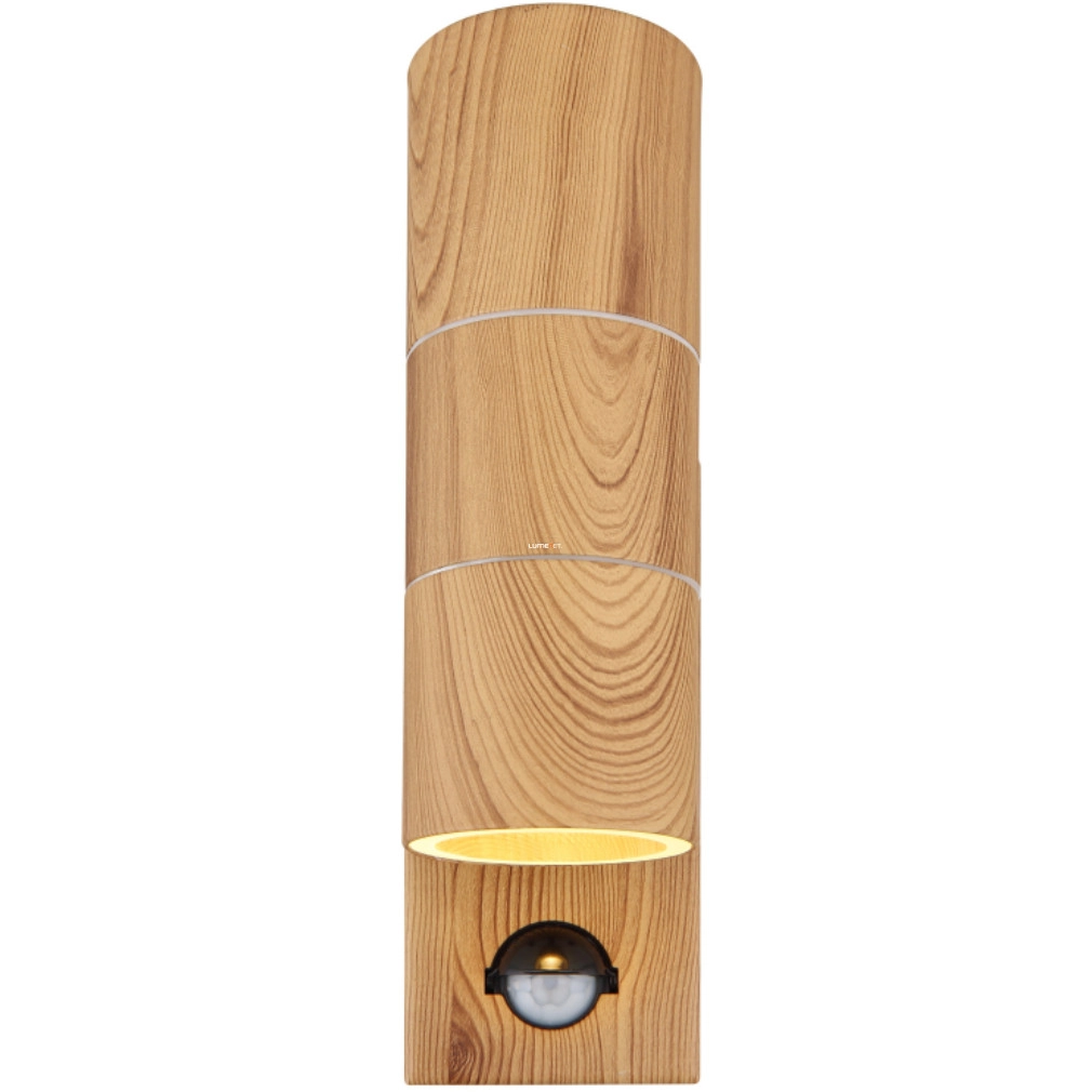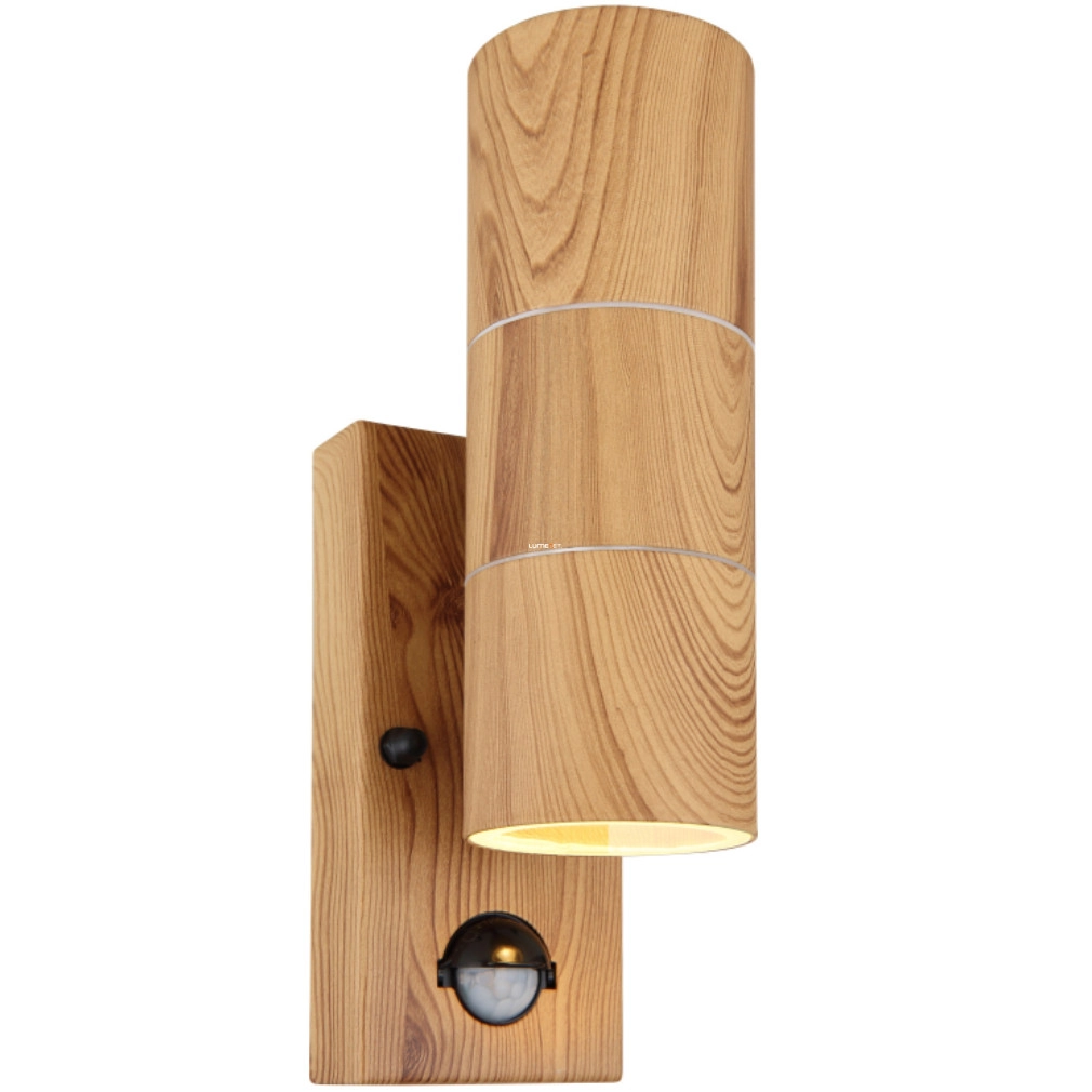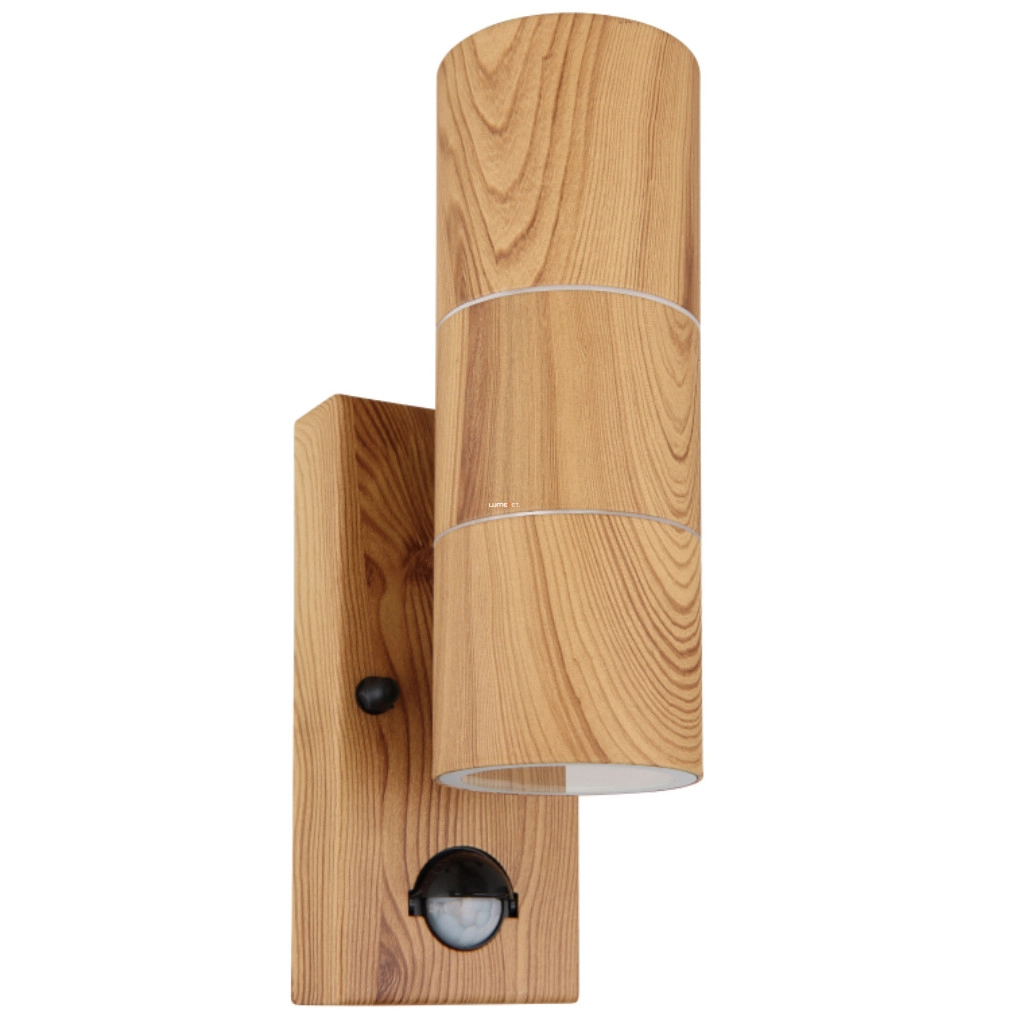 Kültéri mozgásérzékelős fali lámpa 2 foglalattal, fa hatású - Style Globo 3201-2WS