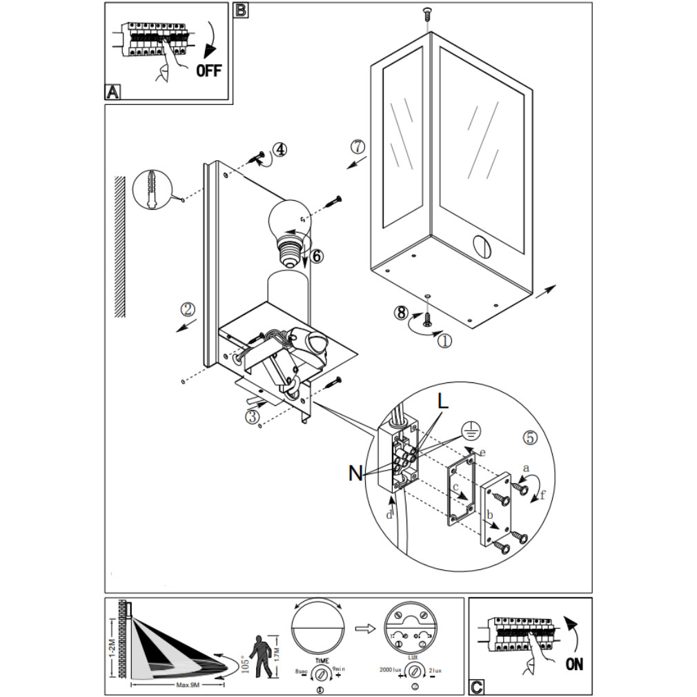 Kültéri mozgásérzékelős fali lámpa - Alamonte Eglo 99587