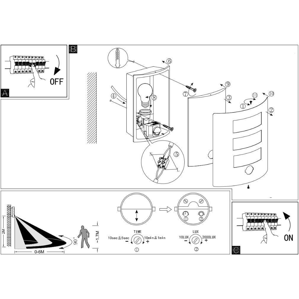 Kültéri mozgásérzékelős fali lámpa, fekete-fehér - City Eglo 99568