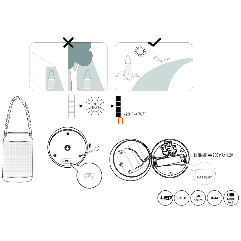 napelemes, akasztható, hordozható