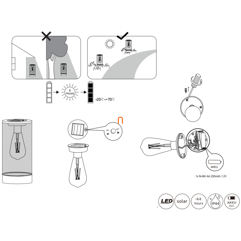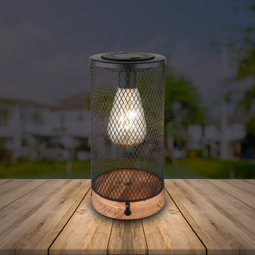 Kültéri napelemes asztali LED lámpa, fekete-fa - Solar Globo 36628