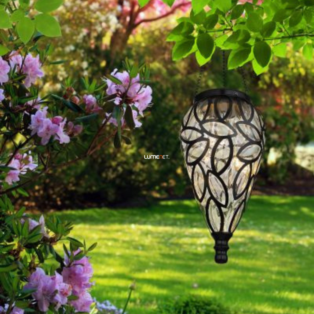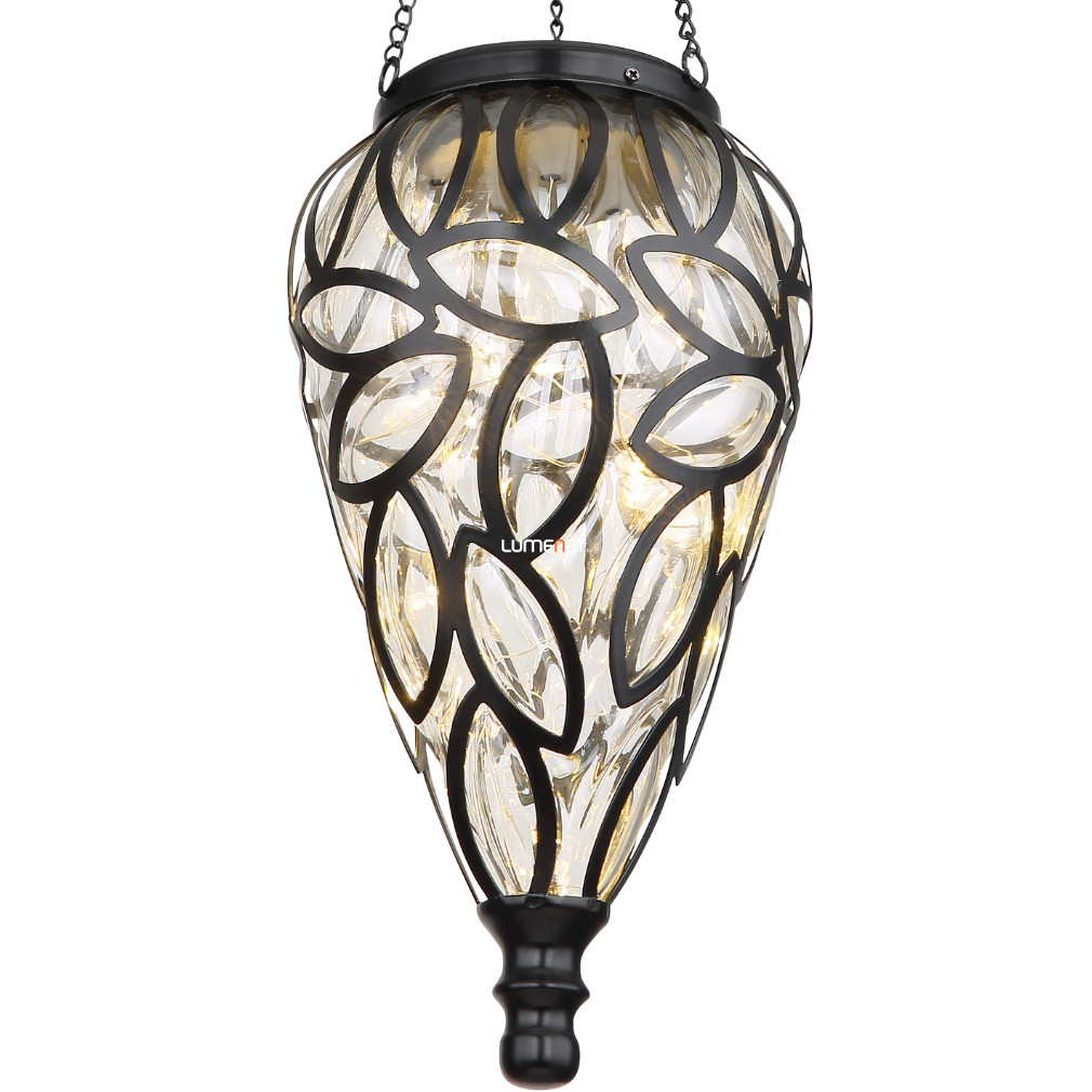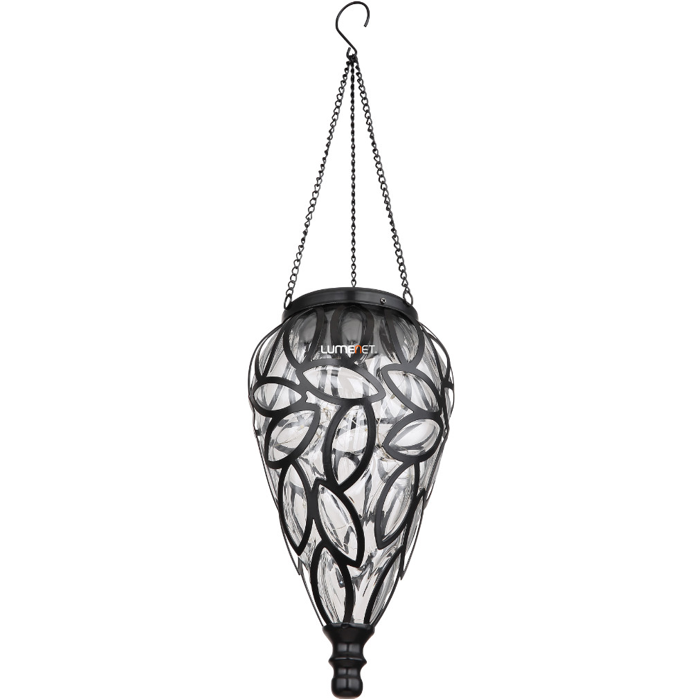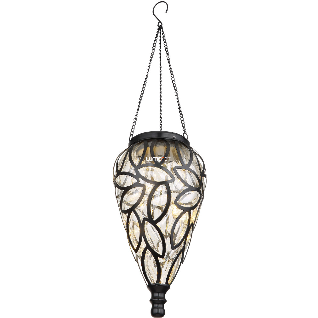 Kültéri napelemes függesztett dekorációs LED lámpa, 13, 5 cm, fekete, levél mintás - Solar Globo 36131