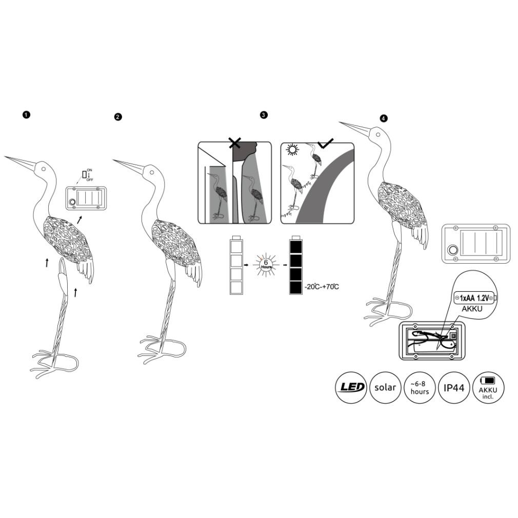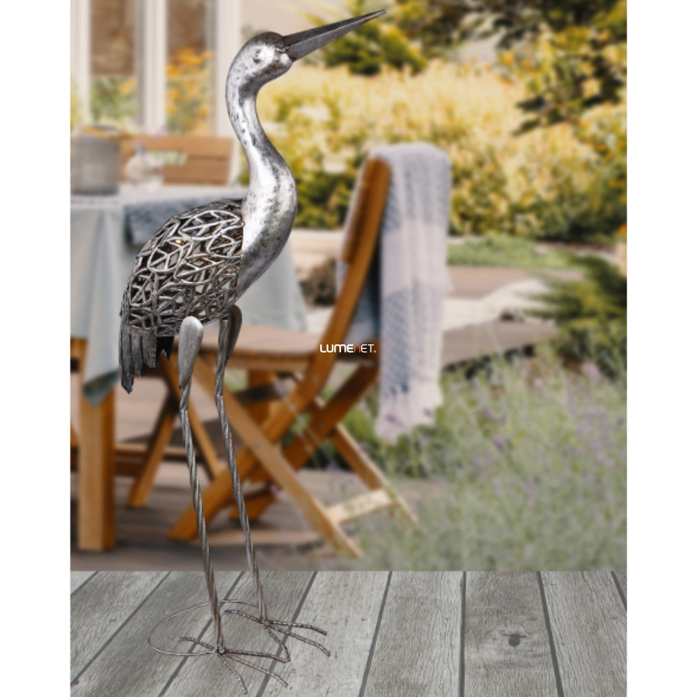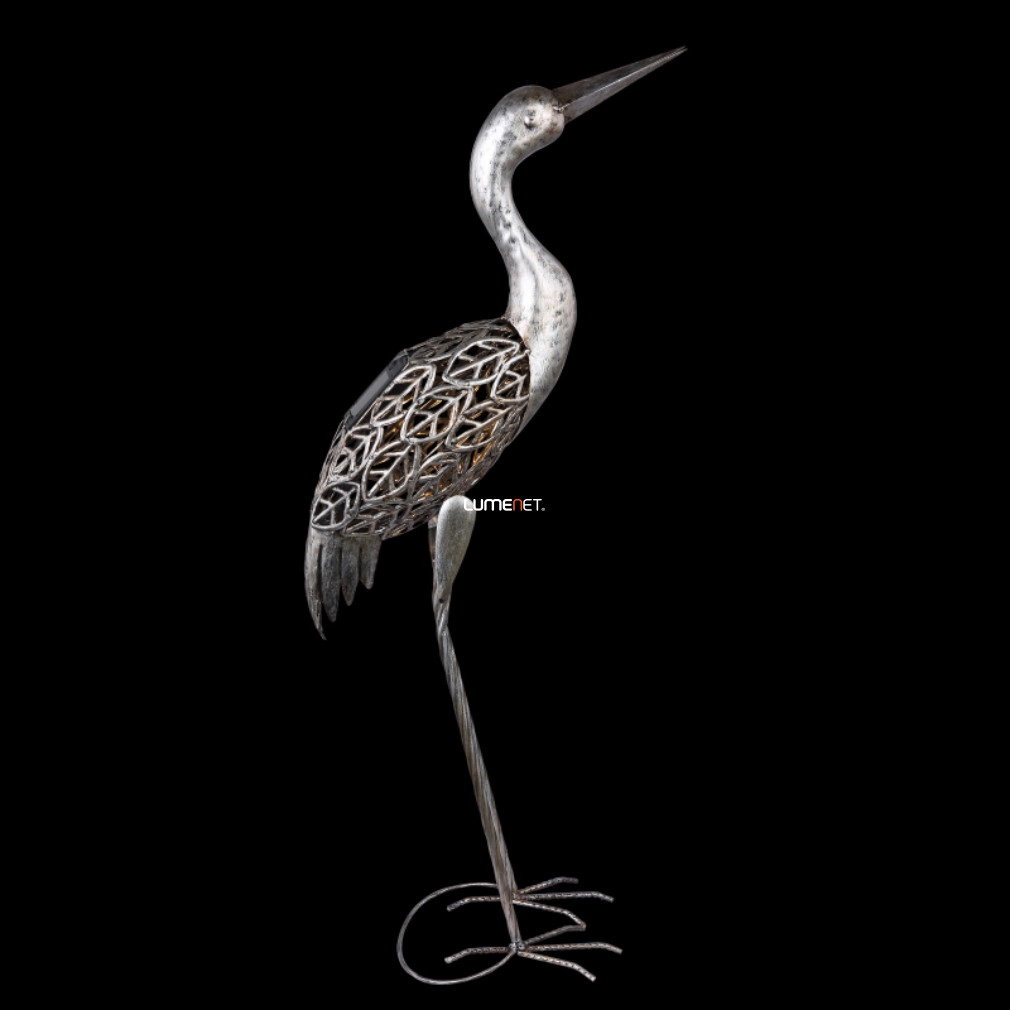 Kültéri napelemes LED dekoráció, 77 cm, szürke daru - Solar Globo 33216