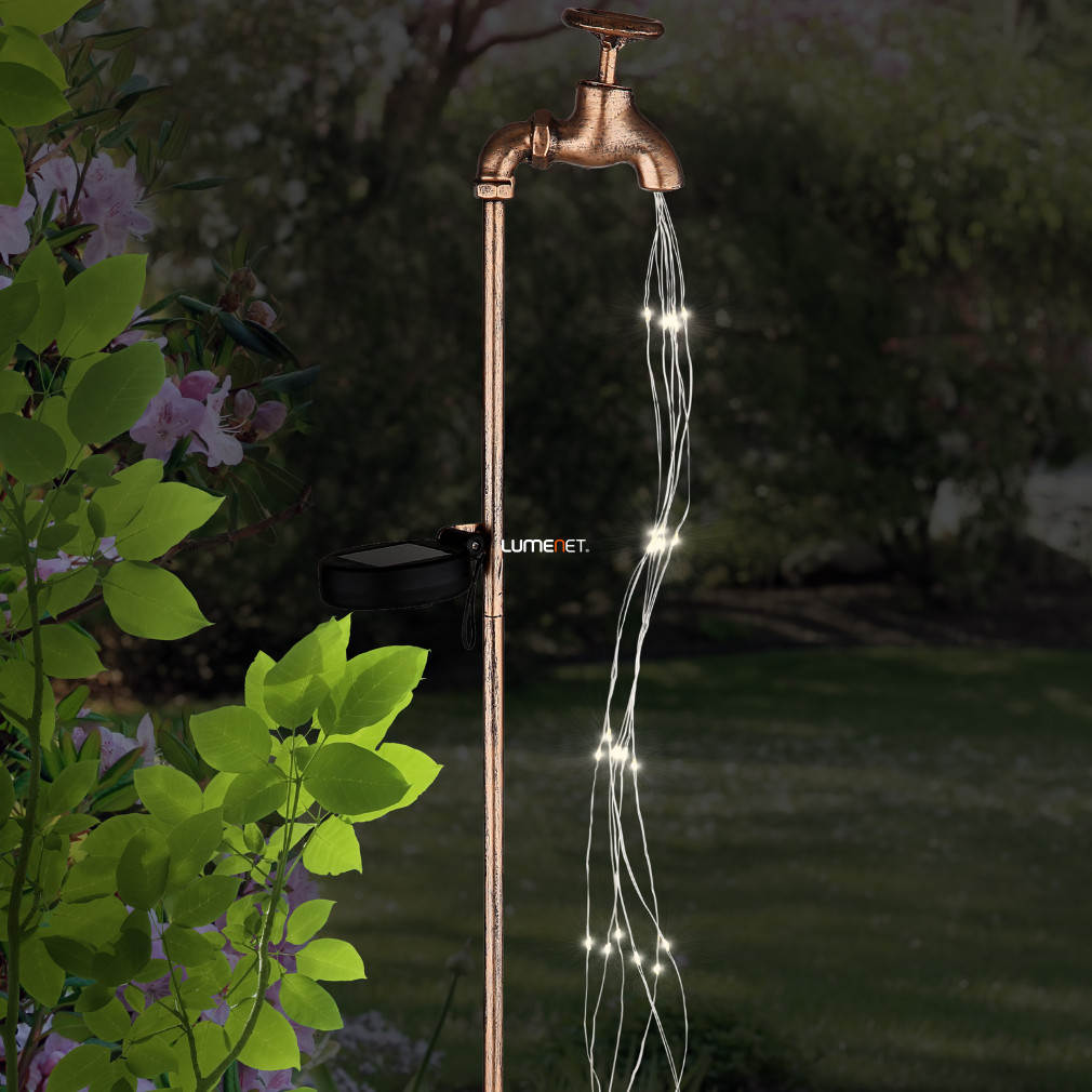 Kültéri napelemes leszúrható világító kerti csap LED vízzel, 80 cm, arany színű - Solar Globo 336522