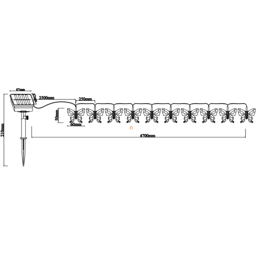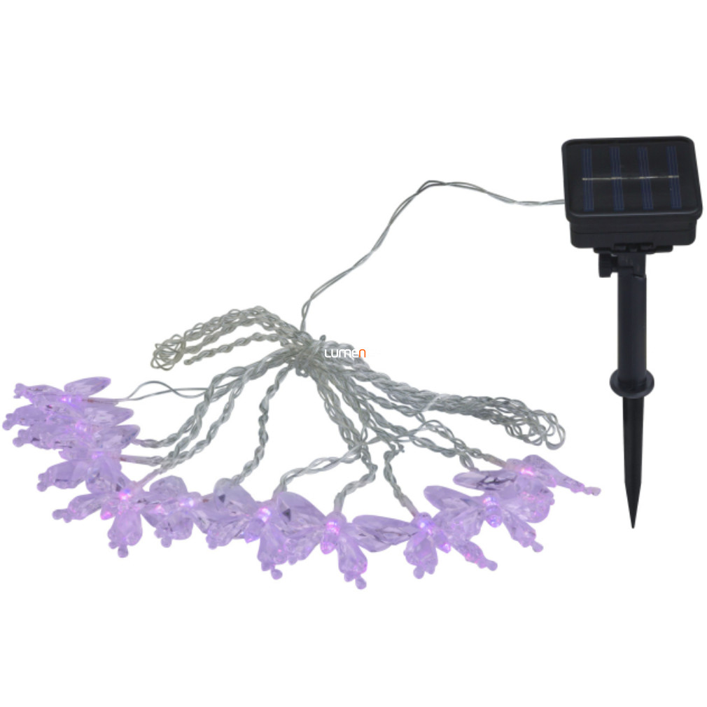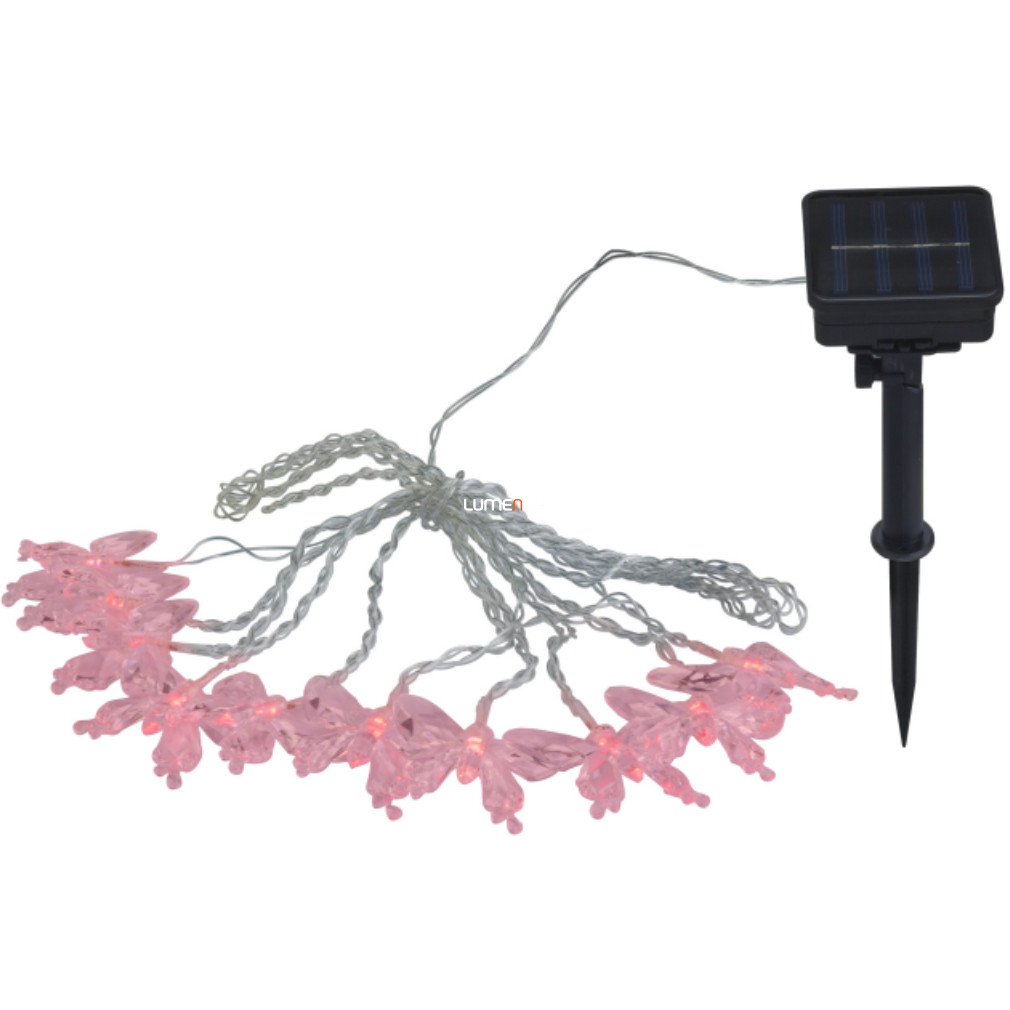 Kültéri napelemes pillangós fényfüzér, 4, 7 m, 10 RGB LED - Solar Globo 33706-10