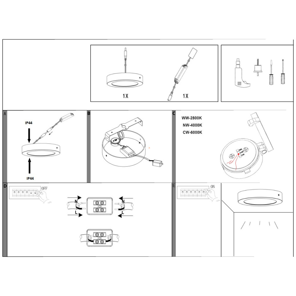 A kültéri szabályozható mennyezeti LED lámpa kerek formája és modern stílusa tökéletesen illeszkedik bármely kültéri környezetbe. Az alumínium és műanyag anyagok kombinációja nemcsak tartósságot, hanem eleganciát is kölcsönöz a lámpának. A lámpa 24 W-os LED modullal rendelkezik, amely 2500 lumen fényáramot biztosít, így erőteljes és hatékony világítást nyújt. A változtatható fehér fény (2800/4000/6000 K) lehetővé teszi, hogy a hangulatnak megfelelően állítsd be a fény színhőmérsékletét, legyen szó meleg, semleges vagy hideg fehér fényről. Az IP44-es védettség biztosítja, hogy a lámpa ellenáll az időjárás viszontagságainak, így bátran használhatod kültéren is. A lámpa átmérője 300 mm, magassága pedig 40 mm, ami kompakt méretet biztosít, így könnyen felszerelhető bármely mennyezetre. A lámpa energiahatékonysági besorolása F, ami azt jelenti, hogy a modern LED technológia ellenére is figyelmet kell fordítani az energiafogyasztásra. Az átlagos élettartama 20 000 óra, így hosszú távon is megbízható megoldást nyújt. A lámpa fekete és fehér színben kapható, így könnyen illeszthető bármely stílusú környezetbe.