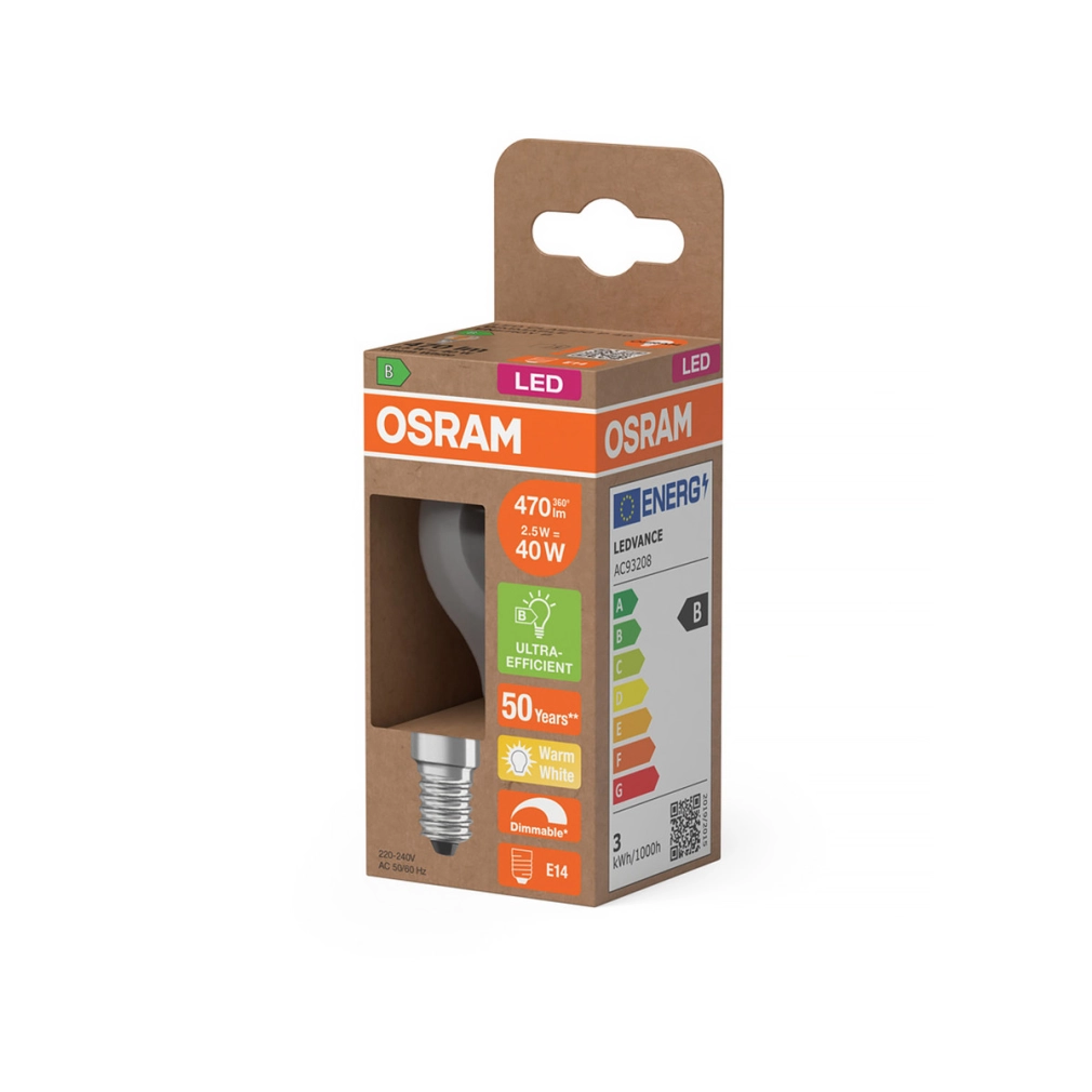 Osram LED Classic P E14, 2,5 W, 470 lm, 2700 K, víztiszta