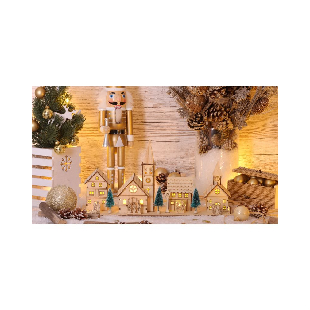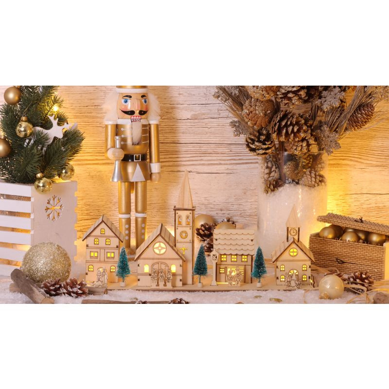 LED karácsonyi falu, fa, elemes, Timer 6+18h,5LED, 3000K, 3xAA CHRWHVIL5WW Tracon