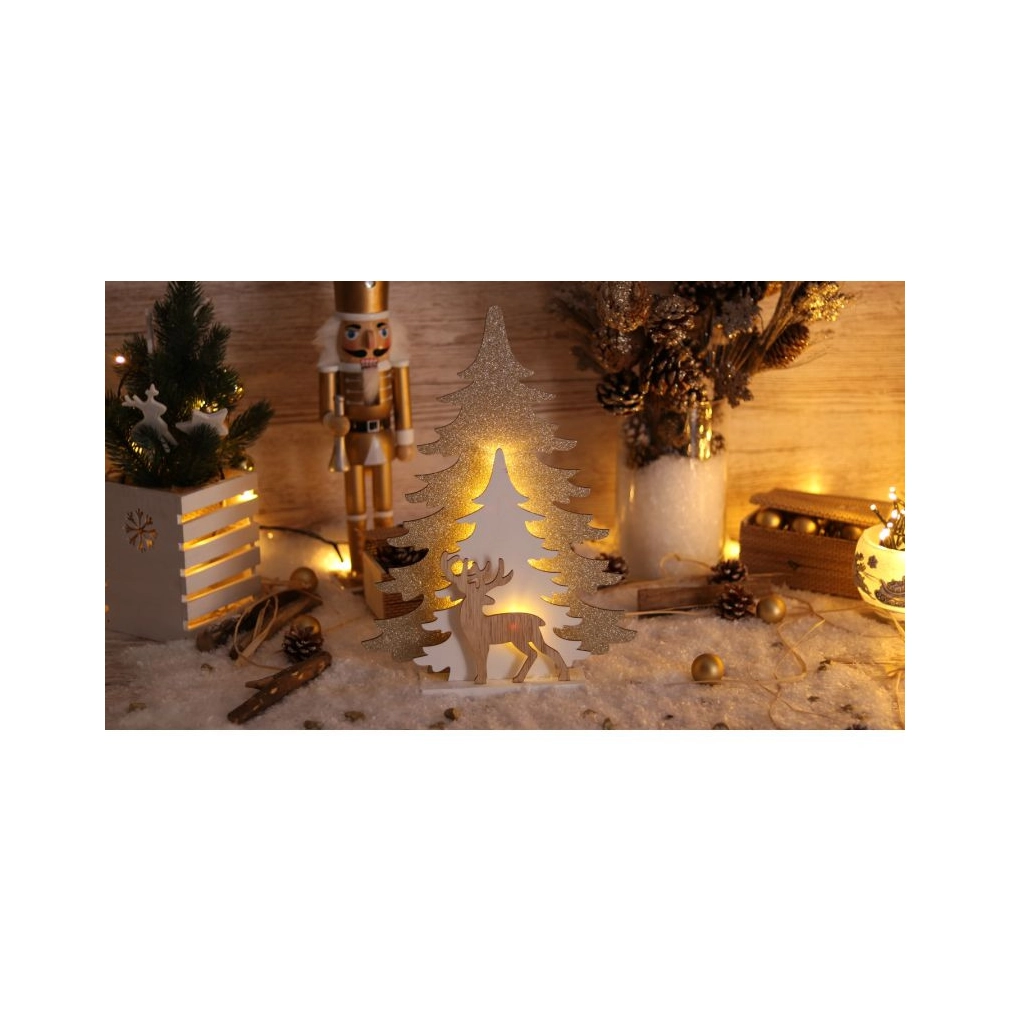 LED karácsonyi fenyő, szarvas,arany, elemes (X22096) CHRTRWG10WW Tracon