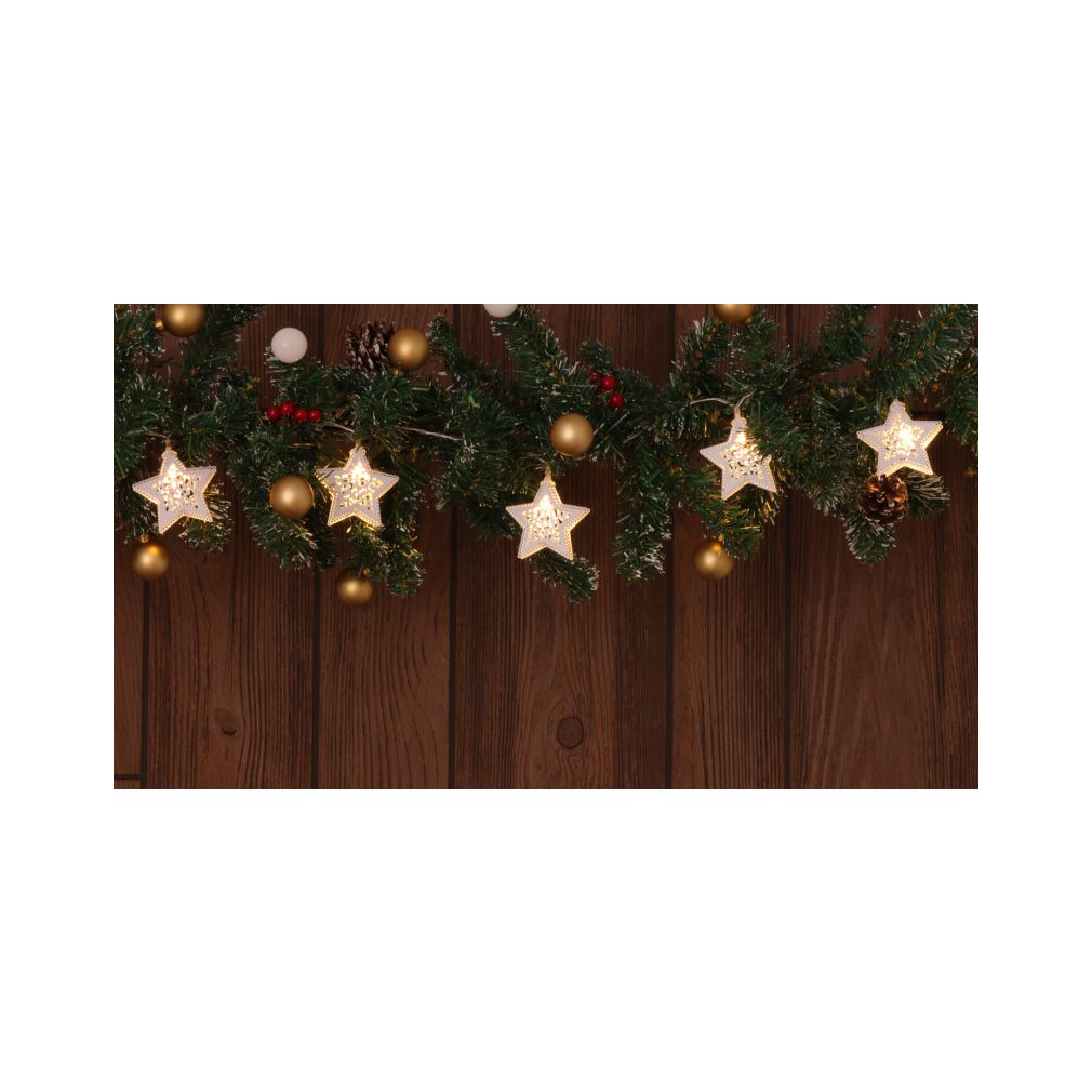 LED karácsonyi lánc, csillag,fehér, elemes, Timer 6+18h,10LED, 3000K, 2xAA CHRSTSTWM10WW Tracon