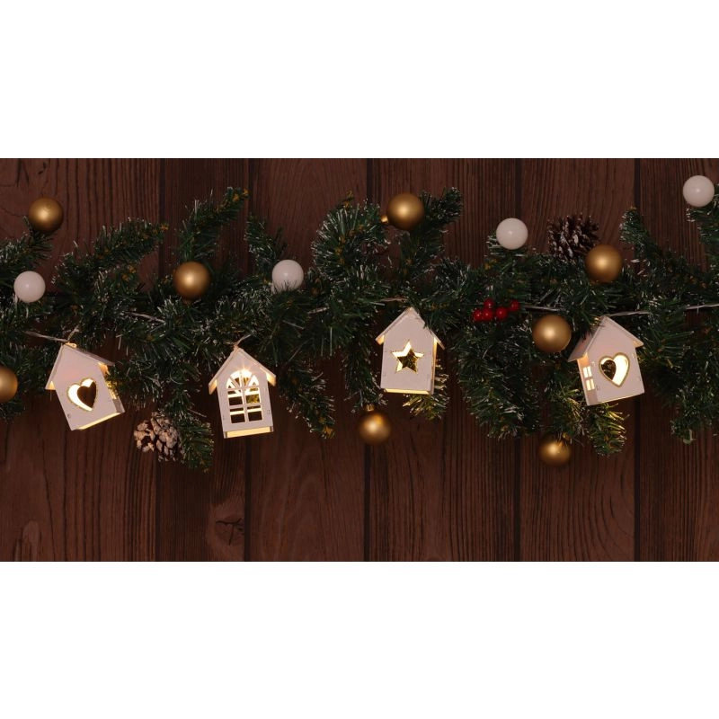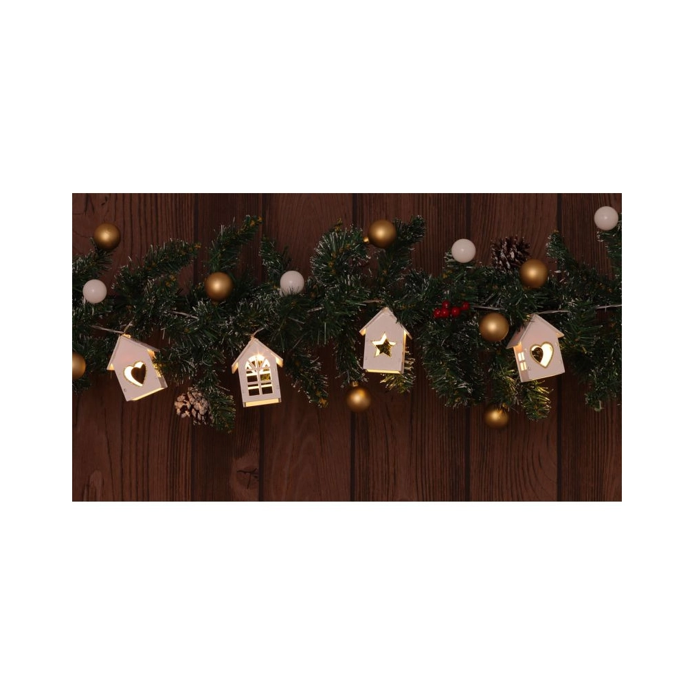 LED karácsonyi lánc, házikó, fehér, fa, elemes, Timer 6+18h,10LED, 3000K, 2xAA CHRSTHWWG10WW Tracon