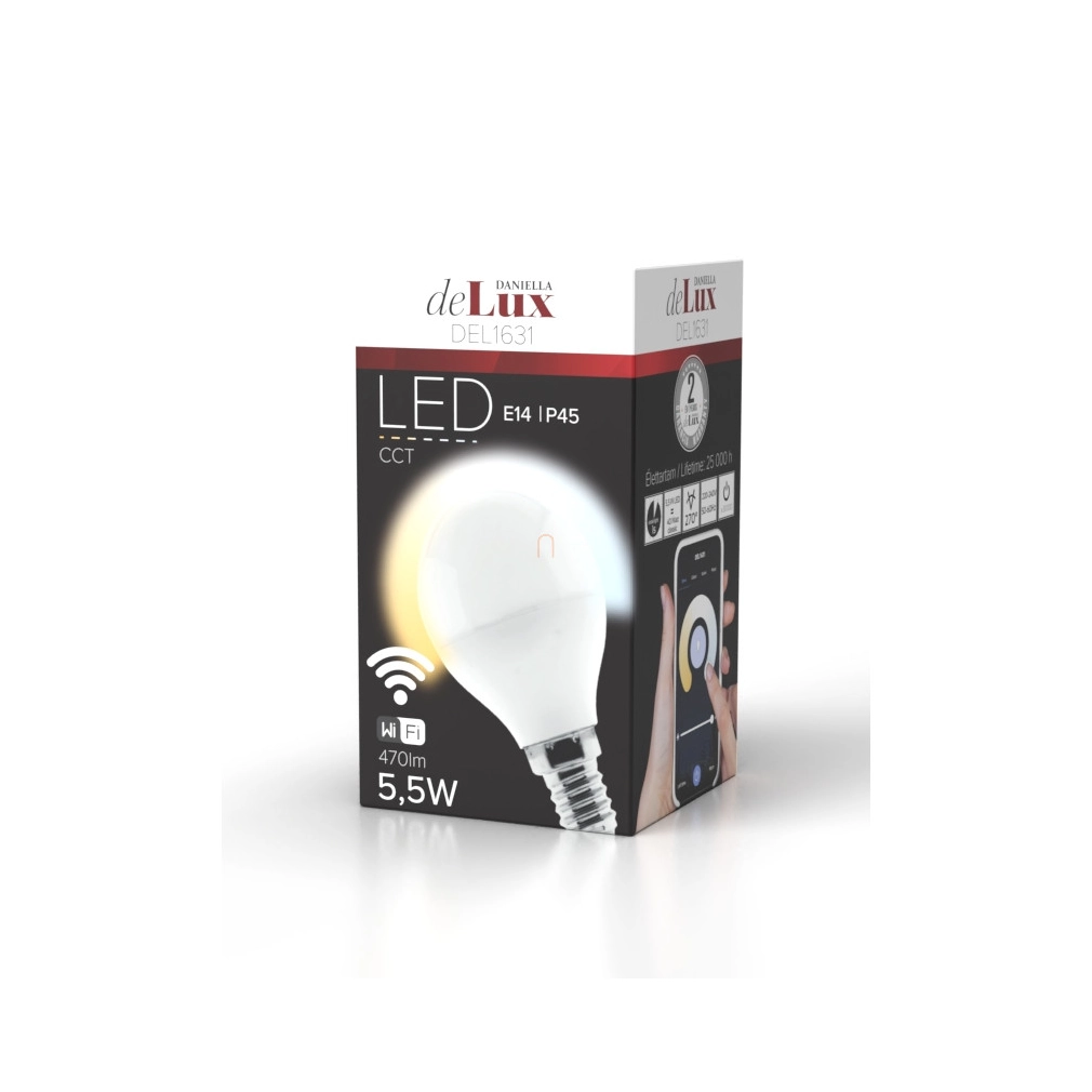 LED gömb E14 5,5W 470lm CCT, Smart Wi-fi szabályozható fényerő, 270 fok deLux DEL1631