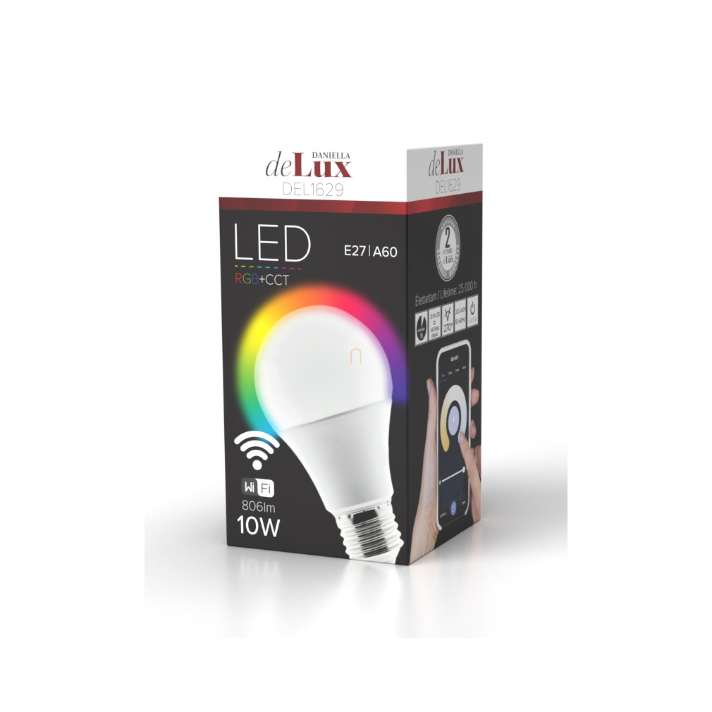 LED körte E27 10W 806lm, RGBW+CCT, Smart Wi-fi szabályozható fényerő, 270 fok, A60, 60*120mm delux DEL1629