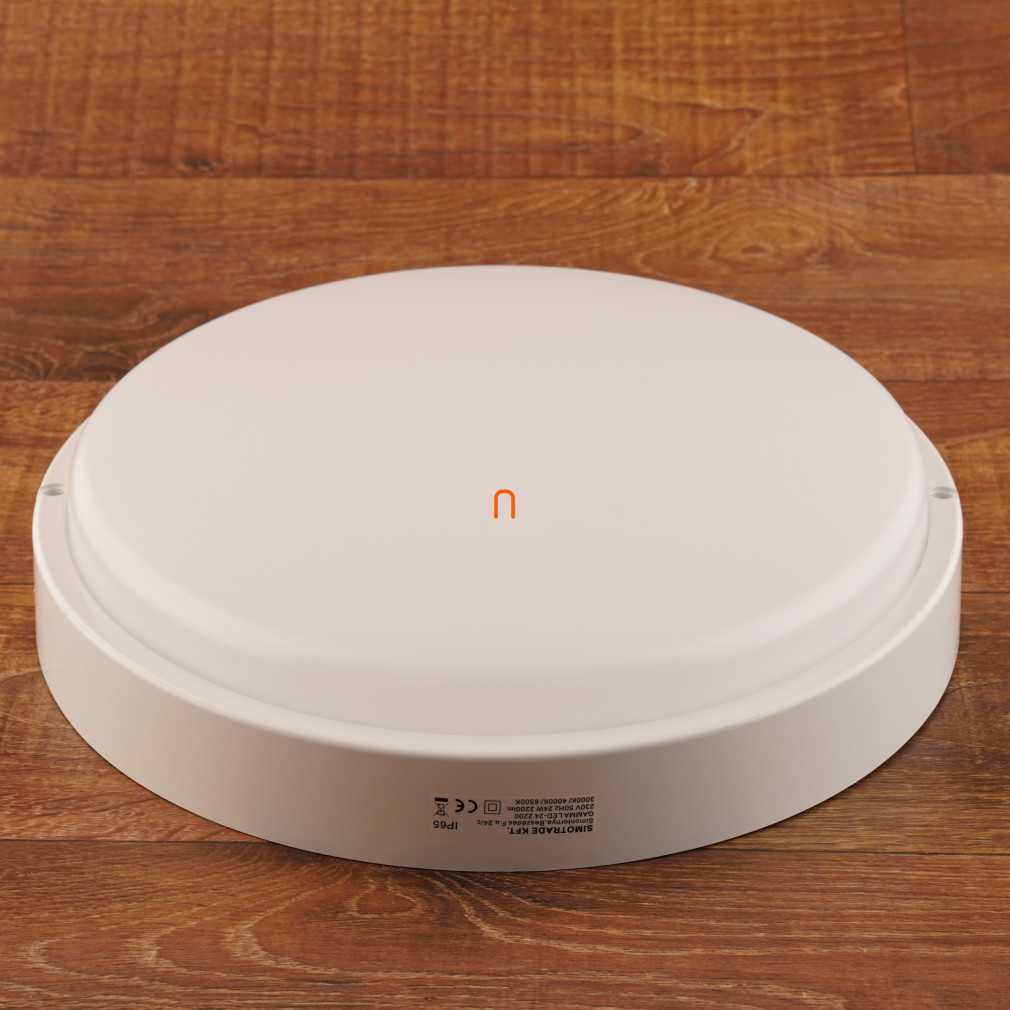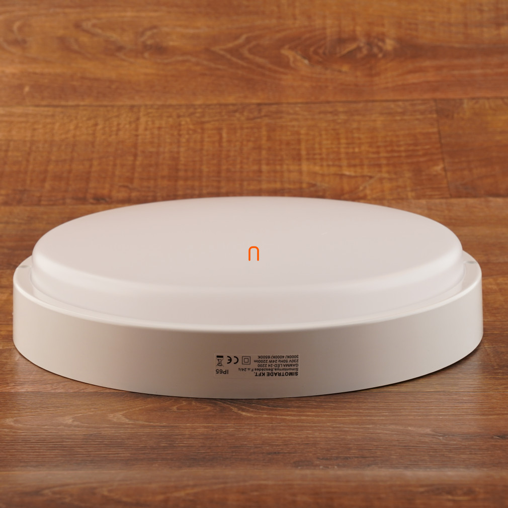 LED Mennyezeti lámpatest kerek 24W 2200lm CCT 3000-4000-6500K GAMMA IP65 PC búra 70 101000520 SimotradeA GAMMA LED lámpatestcsalád IP65 védettsége alapján poros, párás környezetű helyiségek: fedett parkolók, mosdók, ipari létesítmények, közintézmények kiszolgáló helyiségeinek általános világítására ajánlott. Könnyű felszerelés, a lámpatest szétszerelése nélkül elvégezhető, elektromos bekötése a lámpatest hátoldalán kialakított lehajtható fedelű rekeszbe történhet. A termékcsalád színhőmérséklete felszereléskor DIP kapcsolók segítségével állítható (3000K / 4000K / 6000K).