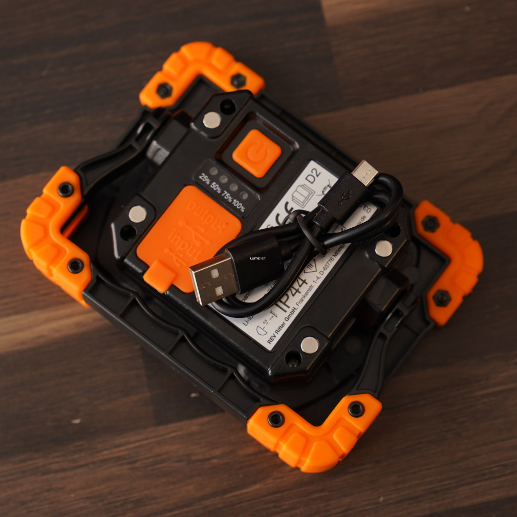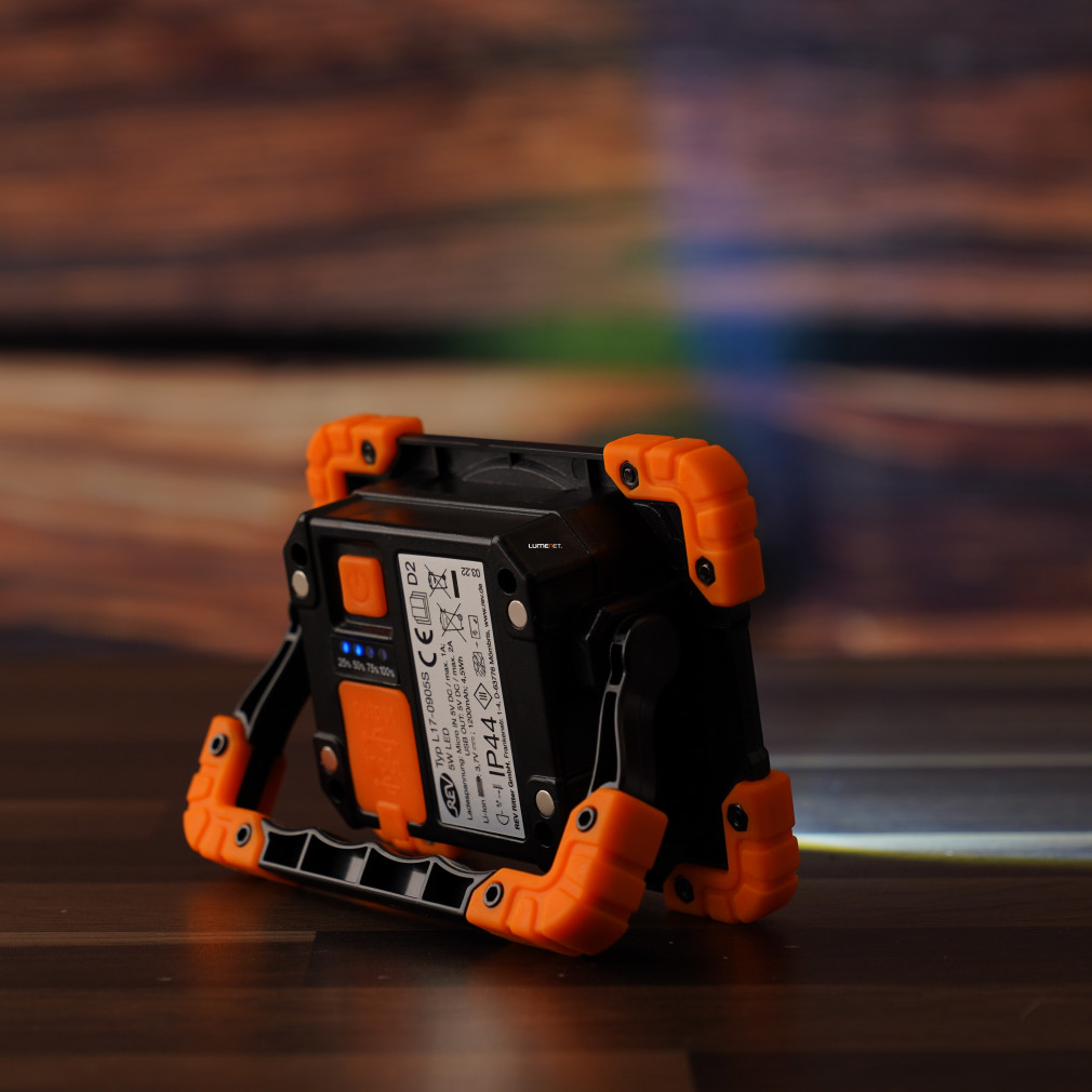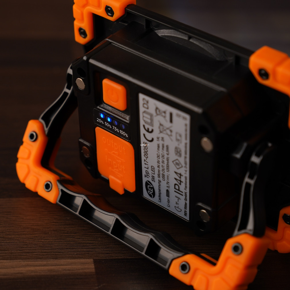 A GAO LED Flood 5 akkus lámpa kis méretű könnyen kezelhető kivitelű munkalámpa. A lámpatest támasztóval szerelt, így stabilan megáll a munkafelületen vagy annak közelében. Az 500 lumen fényáram és a 7500K színhőmérséklet kellő világítást eredményez a kisebb otthoni vagy barkács munkák során. A teljes feltöltést követően a lámpa maximum 2 órán át tud világítani. A fényáramot a munkavégzésnek megfelelően 2 fokozatban állíthatjuk 50% és 100% világítás. A teljes feltöltés hozzávetőlegesen 4 órát vesz igénybe, a csomaghoz járó kábellel. A lámpatest powerbank funkcióval szerelt, így bármely okos eszköz tölthető szükség esetén.