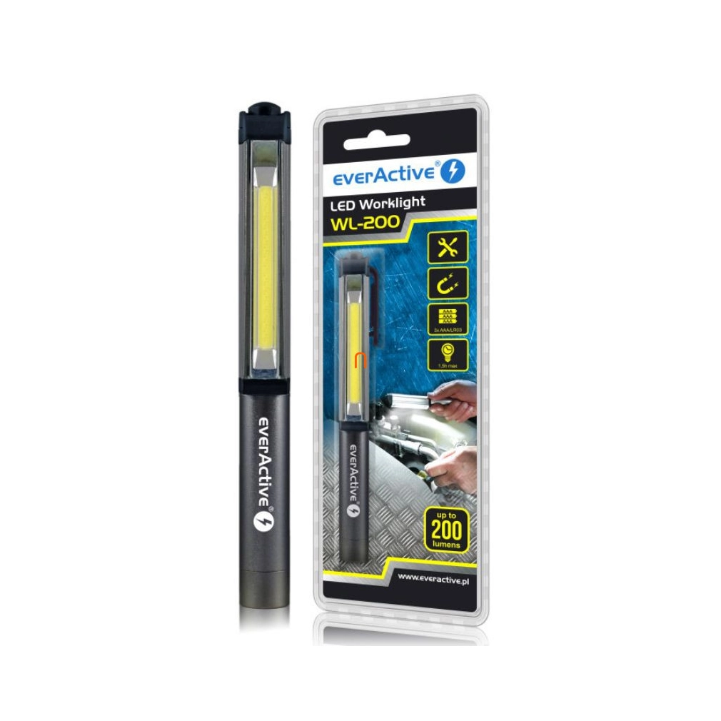 LED munkalámpa/stekklámpa 3W COB ledes EverActive WL-200 (3xAAA elemmel működik, NEM tartozék)