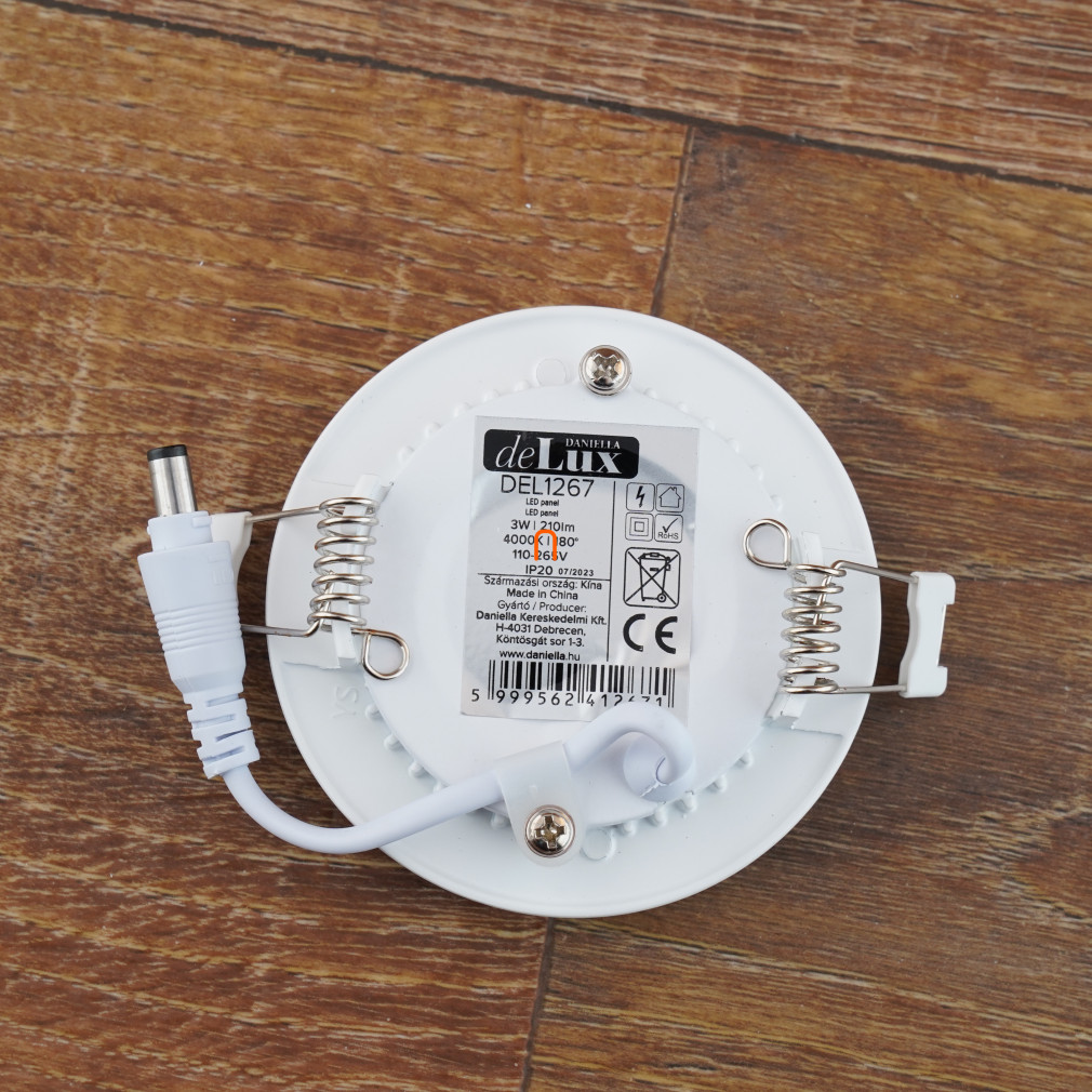 LED Panel kerek süllyesztett 3W 210lm 4000K IP20 DEL1267 DeluxDelux DEL1267 LED Panel kerek süllyesztett 3W 210lm 4000K hideg fehér Ra80 IP20 kivágási méret: 75mm külső méret: 85x20mm