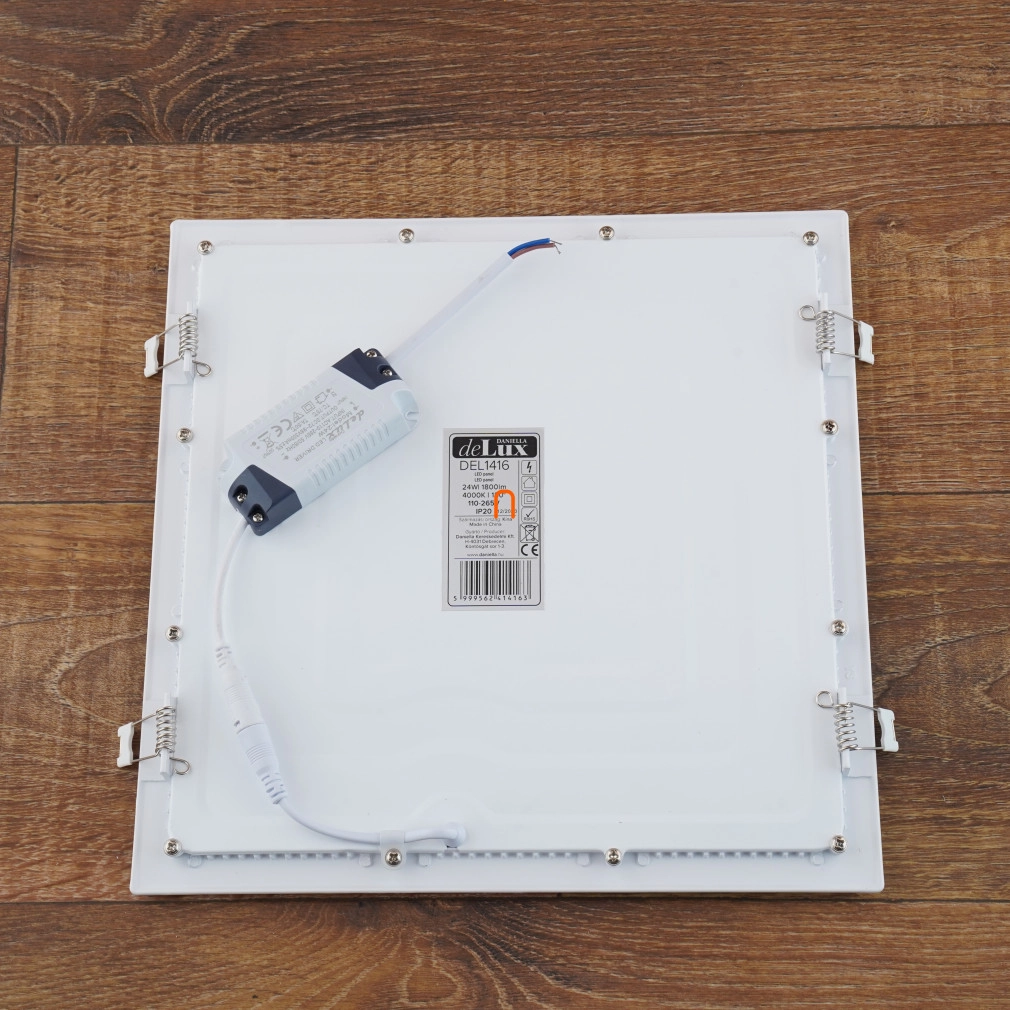 LED Panel négyszögletes süllyesztett 24W 1800lm 4000K IP20 DEL1416 DeluxDelux DEL1416 LED Panel négyszögletes süllyesztett 24W 1800lm 4000K hideg fehér Ra80 IP20 kivágási méret: 280x280mm külső méret: 300x300x20mm 110-265V,2835SMD