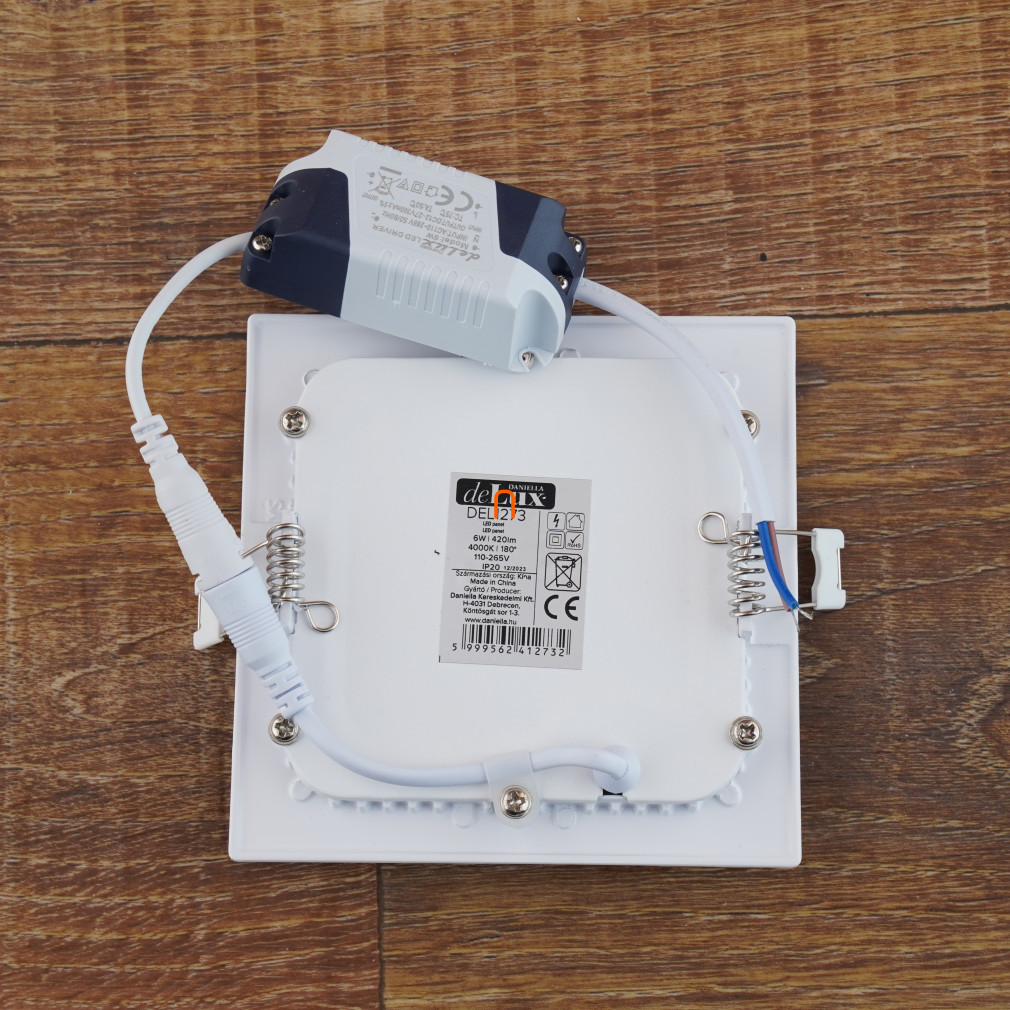 LED Panel négyszögletes süllyesztett 6W 420lm 4000K IP20 DEL1273 DeluxDelux DEL1273 LED Panel négyszögletes süllyesztett 6W 420lm 4000K hideg fehér Ra80 IP20 kivágási méret: 110x110mm külső méret: 120x120x20mm 110-265V, 25x2835SMD