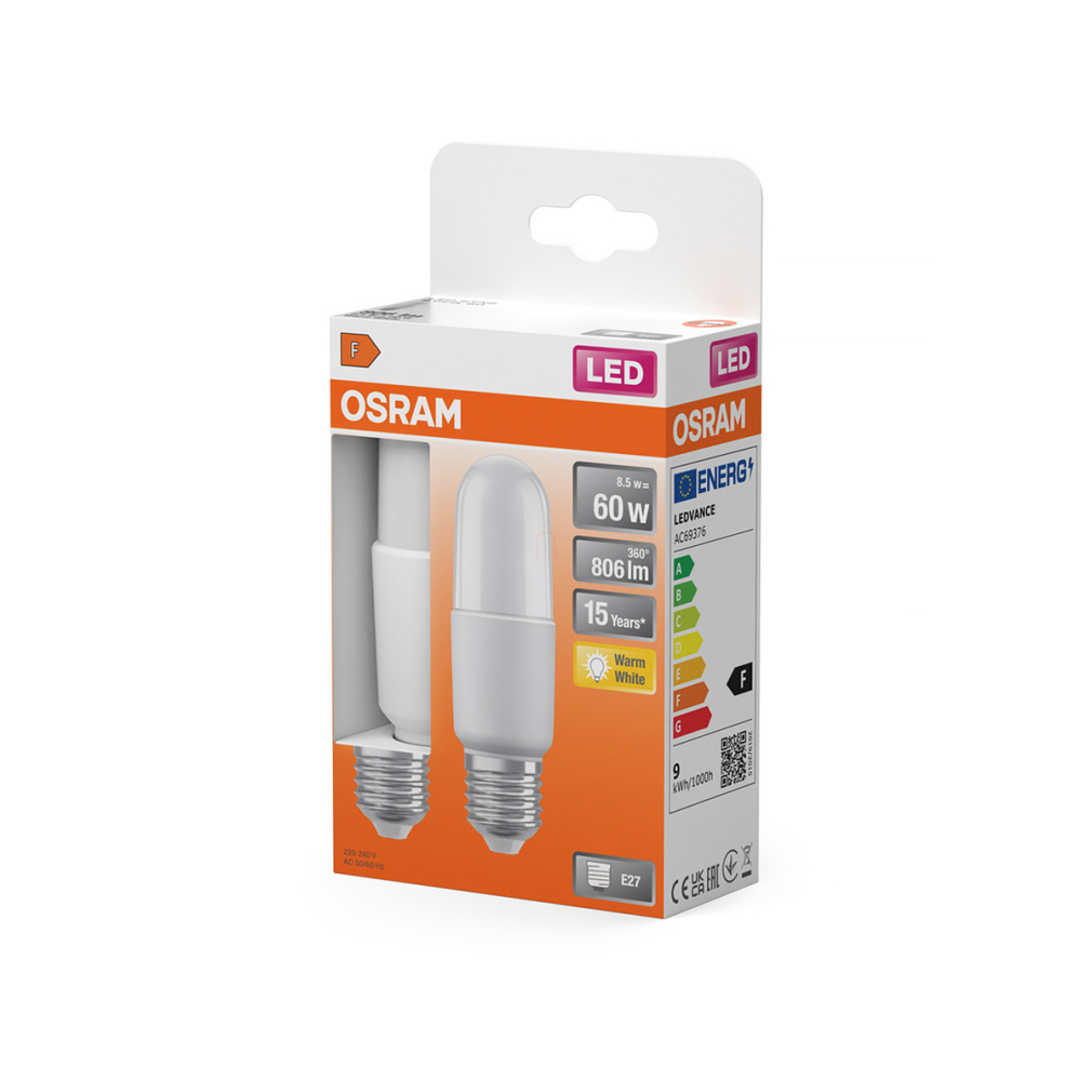 Osram E14 LED PCR Classic Stick 827 8,5 W, 806 lm, 2700 K, opál