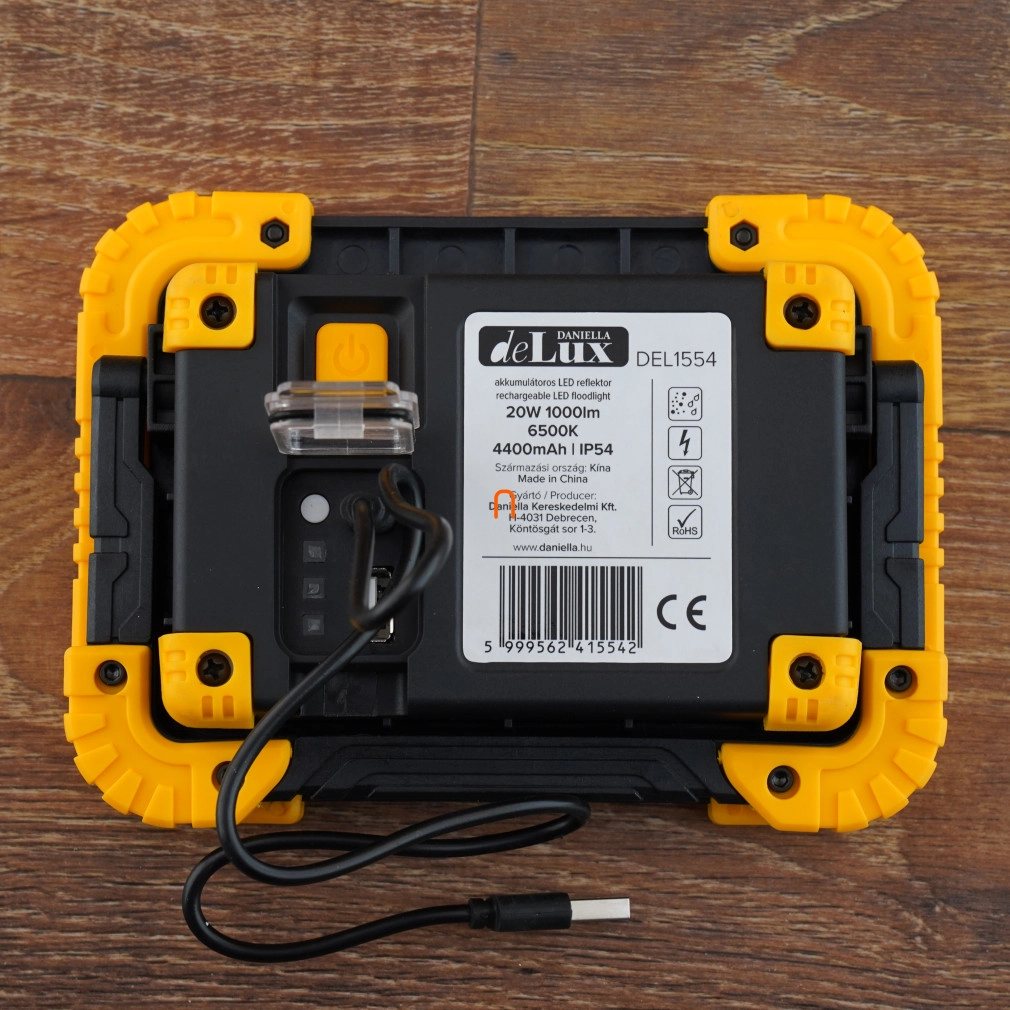 LED reflektor 20W 6500K hordozható 1000lm, IP54, akkumulátoros, USB-s töltés DEL1554 Delux